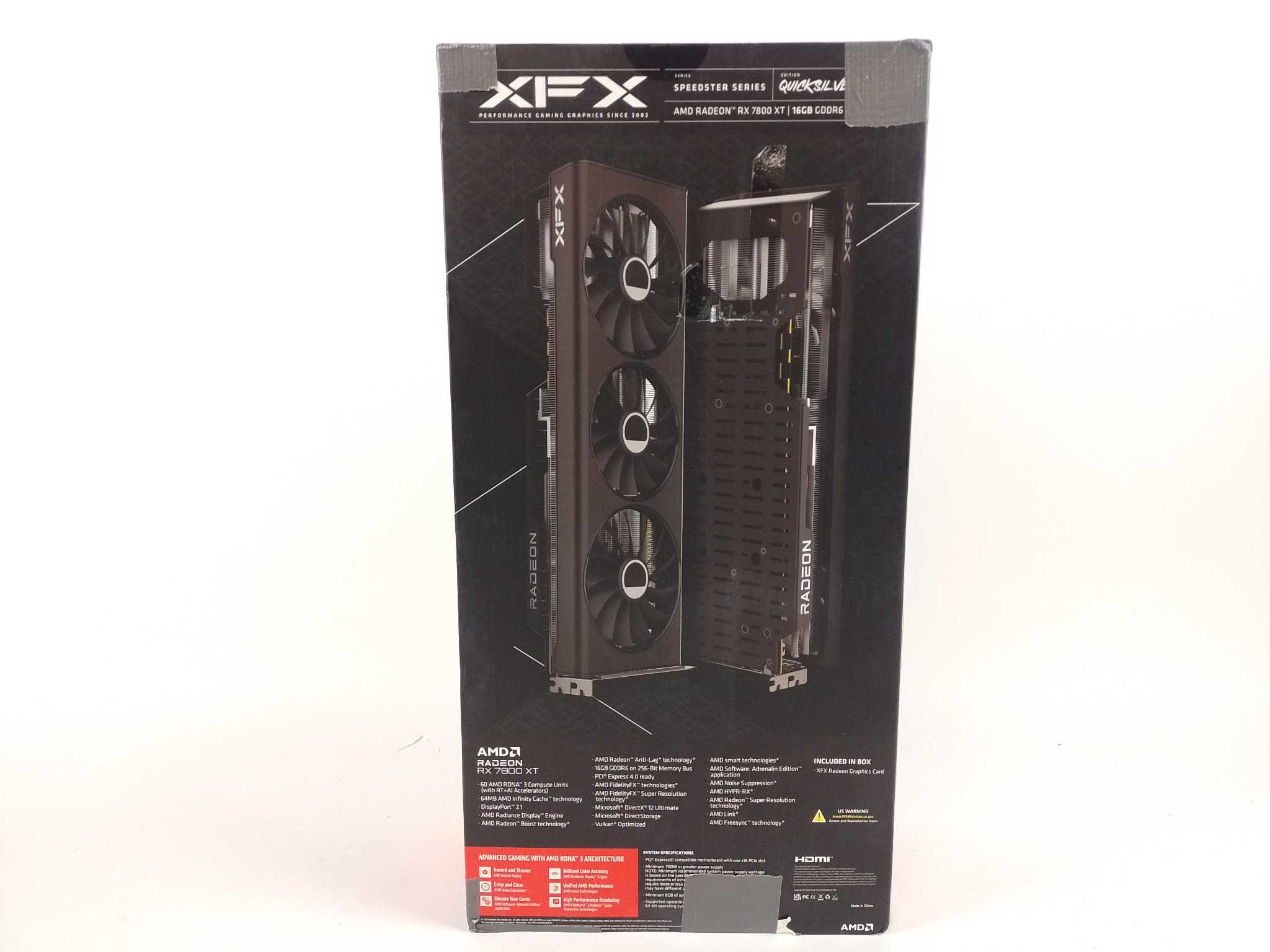 XFX Speedster QICK 319 Radeon RX 7800 XT Core Edition. De XFX Speedster QICK 319 Radeon RX 7800 XT Core levert high-refresh 1440p gaming met 16GB GDDR6, 60 Compute Units en boost tot 2430 MHz. Drievoudige QICK-koeling houdt temperaturen en geluidsniveau laag, terwijl HDMI 2.1 en DisplayPort 2.1 vier schermen ondersteunen. AMD RDNA 3, Ray Tracing en FSR zorgen voor toekomstbestendige prestaties. Meegeleverd: grafische kaart RX-78TQICKF9, quick-start gids en bracket. Ideaal voor gaming, streaming en creatieve workloads op pc-systemen, dagelijks.