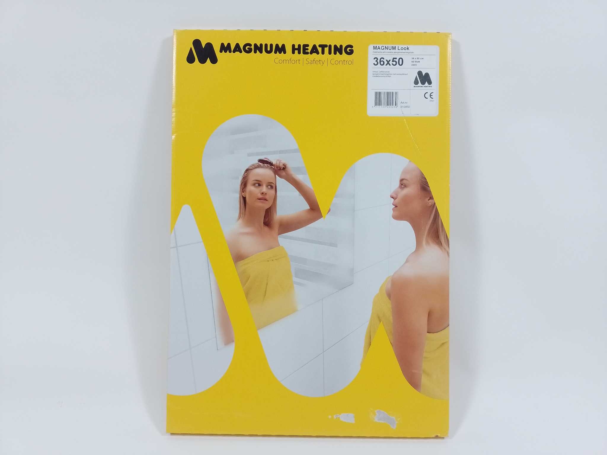 Magnum Spiegelverwarmingset Look - 36x50 cm - 50W. Magnum Look Spiegelverwarming 36×50 cm (50 W) houdt je badkamerspiegel streeploos helder na douchen. Het zelfklevende, ultradunne (0,4 mm) folie verwarmt snel en efficiënt op 230V. Dubbel geïsoleerd en ge