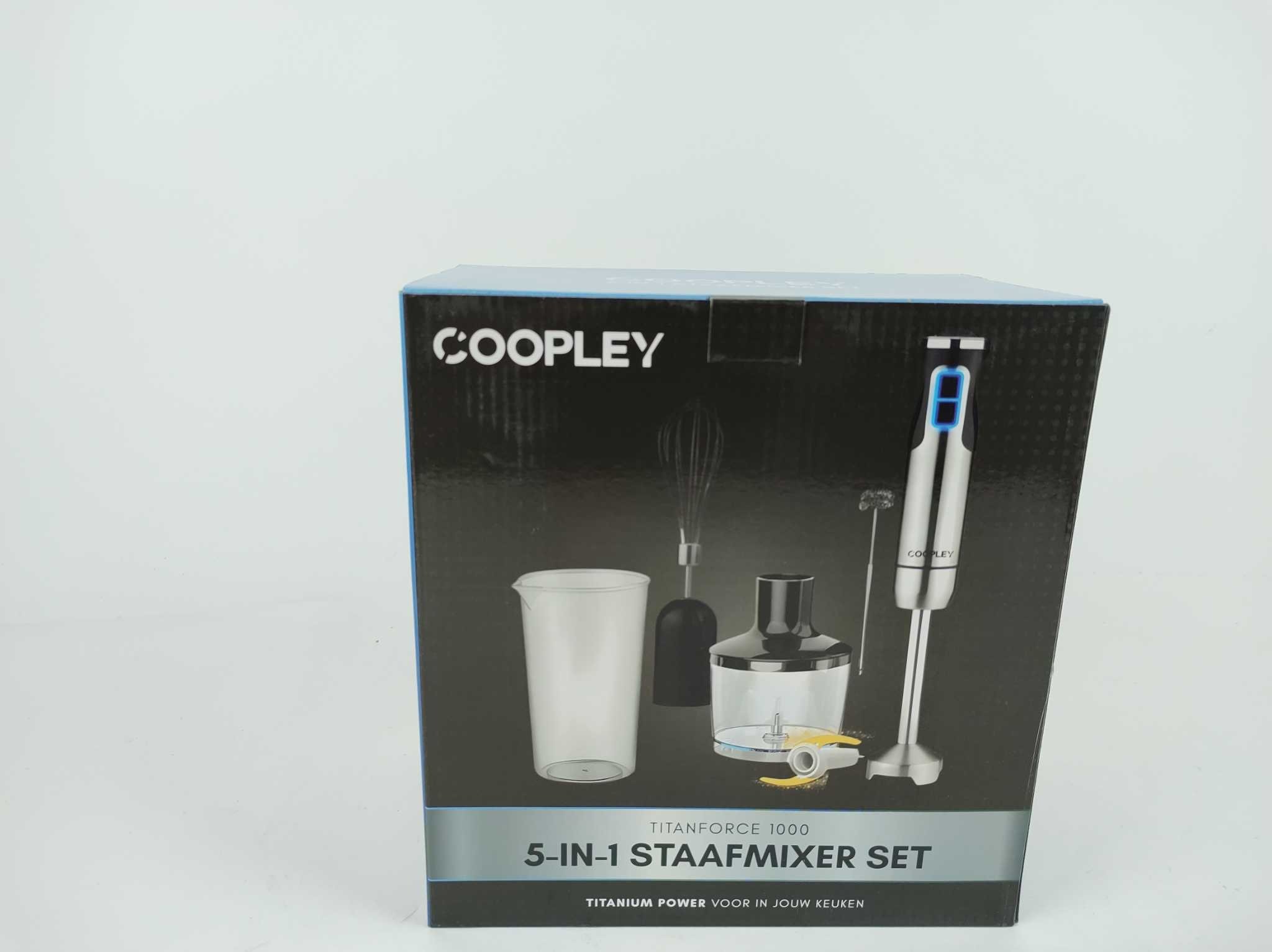 Coopley Staafmixer Set 6-in-1 - Titanforce. De Coopley Titanforce staafmixer set is een krachtige alleskunner voor elke keuken. Met 1000 watt vermogen, 12 snelheden en turbofunctie mix, pureer, hak en klop je moeiteloos uiteenlopende ingrediënten. Het sil