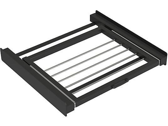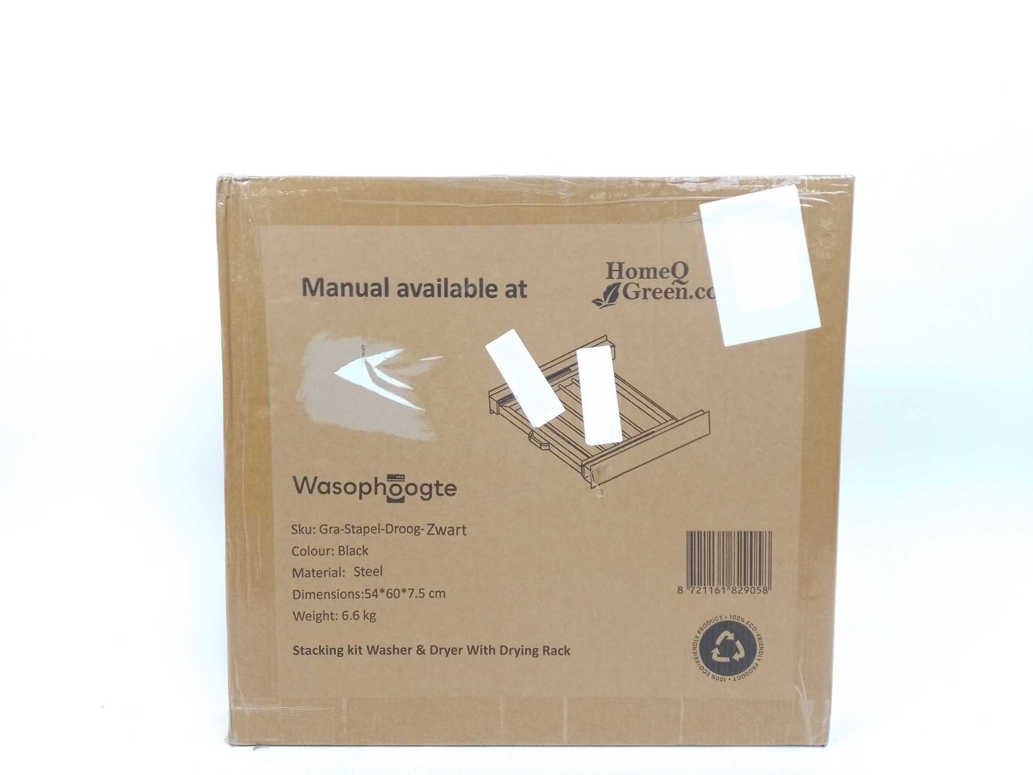 Wasophoogte Stapelkit Connect - met Droogrek - Zwart. De Wasophoogte Connect stapelkit met uitschuifbaar droogrek is een slimme oplossing om wasmachine en droger veilig en ruimtebesparend te stapelen. Het universele ontwerp is geschikt voor vrijwel elk type apparaat en combineert stabiliteit met extra gebruiksgemak. Dankzij het geïntegreerde droogrek heb je direct extra plek voor handdoeken of klein wasgoed. De stevige metalen uitvoering in zwart heeft een draagvermogen tot 100 kg en een compact formaat van 60 x 54 x 7,5 cm voor iedere wasruimte thuis en appartementen.