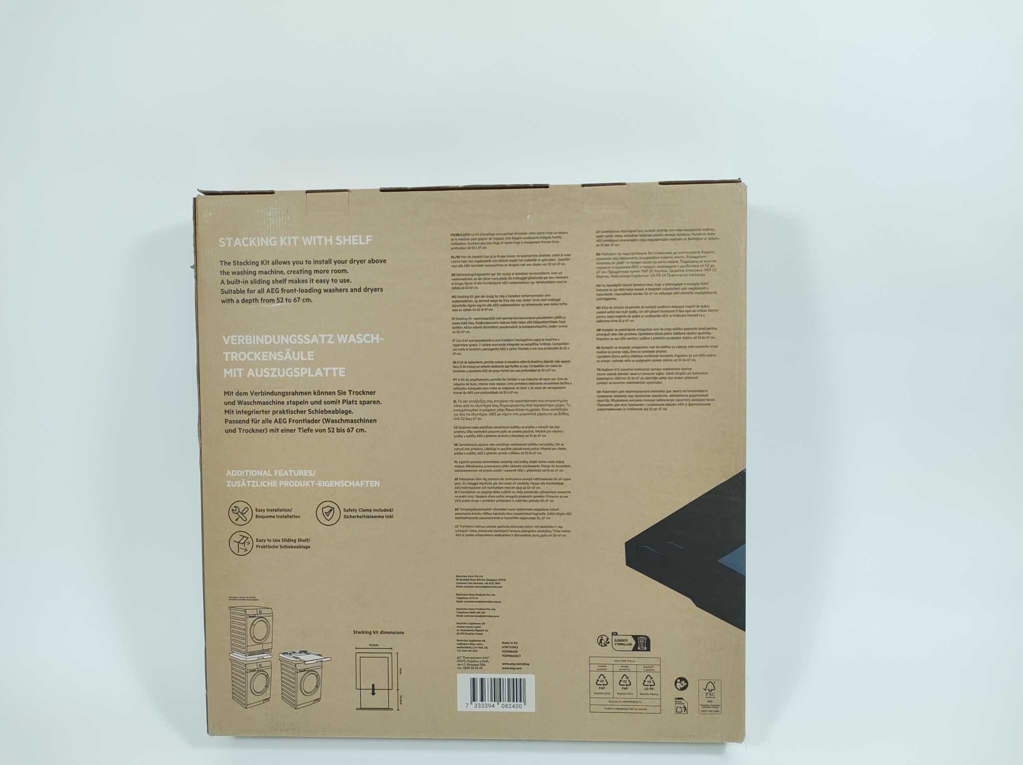 AEG Stapelkit voor Wasmachine/Droger - Wit. Dit AEG A1WYHSK2 stapelkit‑accessoire met uittrekbare legplank is dé ruimtebesparende oplossing voor jouw wasruimte. Gemaakt van lichtgewicht kunststof, geschikt voor AEG voorladers met een diepte van 52–67 cm.