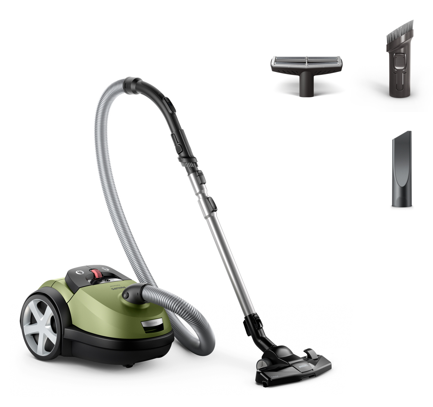 Philips Stofzuiger 8000-serie Performer LED - Groen - XD8121/10. De Philips 8000 Serie Performer LED XD8121/10 stofzuiger met zak biedt krachtige zuigkracht en is ideaal voor allergieën dankzij het HEPA 13-filter. Met LED-verlichting voor een grondige rei