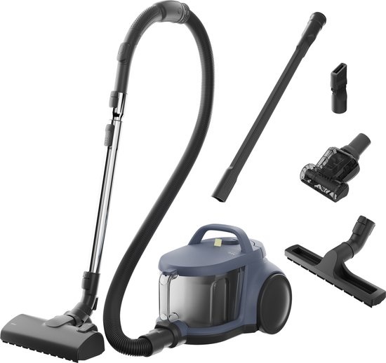AEG Stofzuiger Animal 5000 - AL51A3LDB. De AEG Animal 5000 zakloze stofzuiger maakt korte metten met huisdierharen op tapijt, bank en harde vloeren. Cyclonische scheiding behoudt zuigkracht, terwijl het volledige HEPA-filtersysteem tot 99,95% fijne deeltjes opvangt voor schonere uitblaaslucht. De 2-liter stofbak leeg je hygiënisch zonder stofwolk. Met 9 meter actieradius, zachte wielen en zuigkrachtregeling manoeuvreer je soepel. Voetbediening op de vloerzuigmond wisselt snel tussen vloertypes zonder stoppen. Compact ontwerp berg je eenvoudig op. Inclusief AllFloor zuigmond, parketzuigmond, mini turboborstel, lange flexibele spleetzuigmond en 2-in-1 tool.