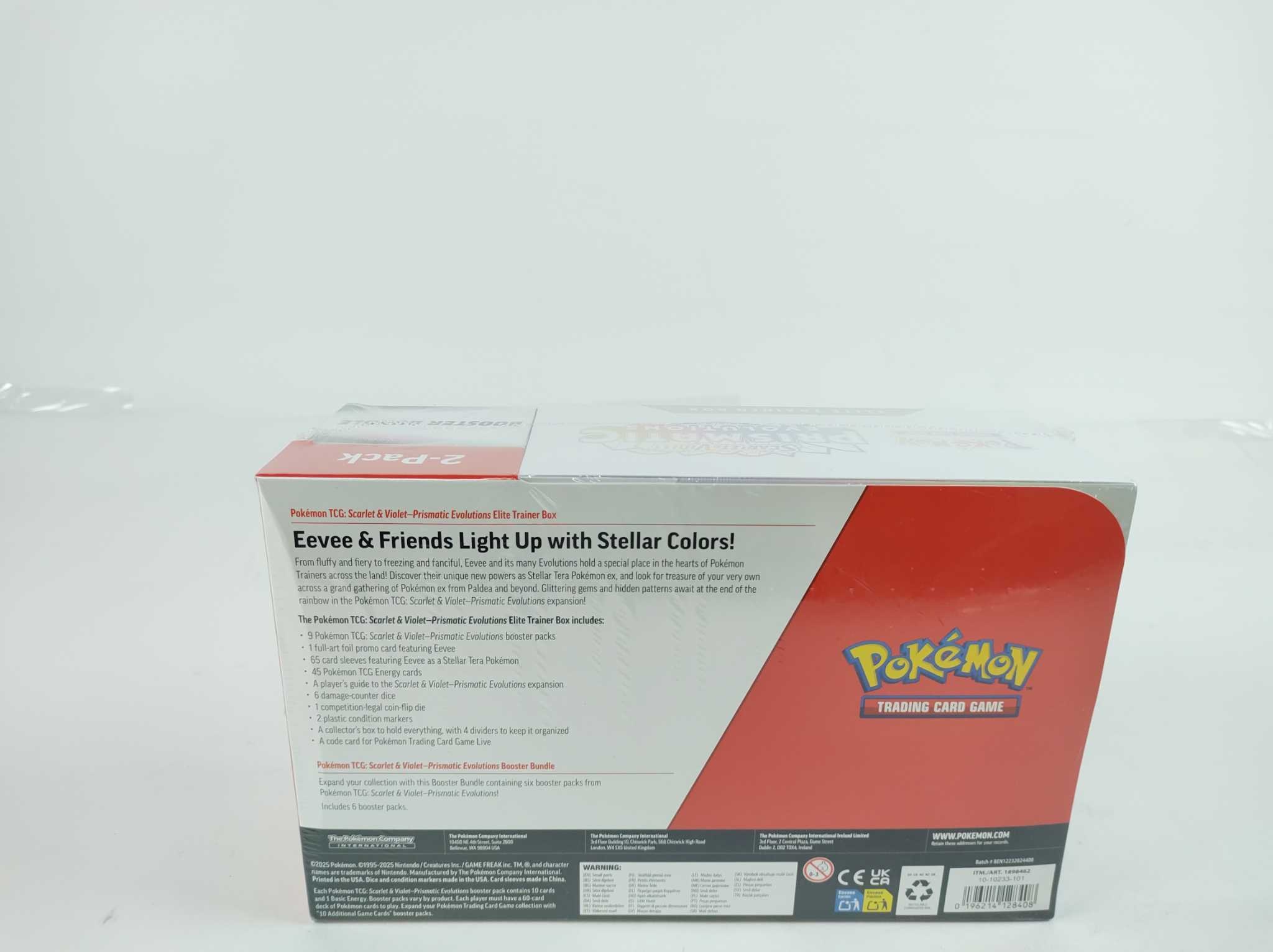 Pokémon TCG Bundle - Scarlet & Violet - Prismatic Evolutions. Pokémon Scarlet & Violet Prismatic Evolutions 2-pack is ideaal voor verzamelaars en spelers die hun collectie snel willen uitbreiden. Deze exclusieve set bevat een Elite Trainer Box en een Booster Bundle, samen goed voor 15 booster packs vol verrassende kaarten. Daarnaast krijg je een full-art Eevee promokaart, kaarthoesjes, energiekaarten, dobbelstenen, markers en een handige opbergdoos. Perfect voor fans van Eevee en zijn evoluties die direct kiezen voor inhoud, speelplezier en een complete start of sterke uitbreiding van hun deck thuis.