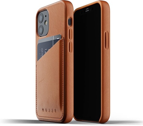 Mujjo Telefoonhoesje iPhone 12 Mini - Bruin. Bescherm én vereenvoudig je dagelijkse carry met de Mujjo Full Leather Wallet Case – een iPhone 12 mini hoesje met kaarthouder (bruin). Premium plantaardig gelooid leer met Japanse microvezel voering, opstaande
