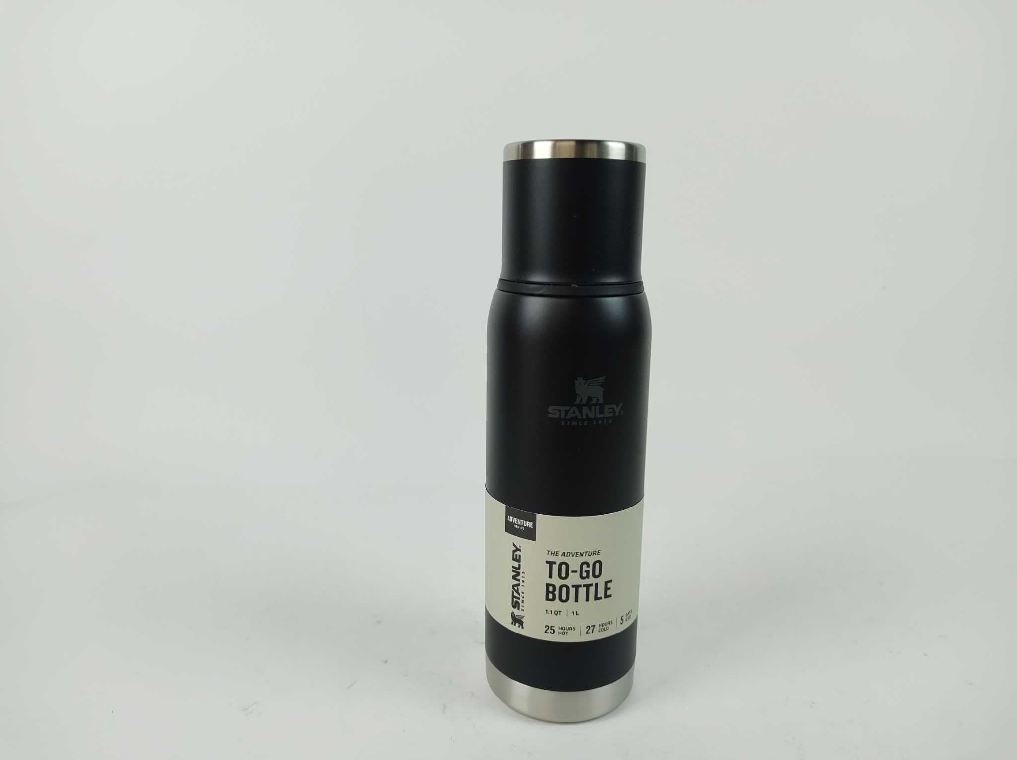 Stanley Thermosfles 1L - The Adventure To Go - Zwart. De Stanley Adventure To-Go thermosfles 1 liter is ideaal voor werk, reizen en outdoor gebruik. Dankzij dubbelwandige vacuümisolatie blijven dranken tot 25 uur warm, 27 uur koud en zelfs 5 dagen met ijs