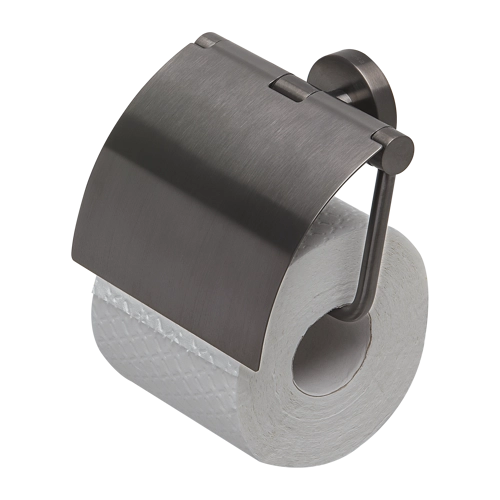 Geesa Toiletrolhouder Nemox - Zwart Metaal Geborsteld. De Geesa Nemox toiletrolhouder met klep in geborsteld zwart metaal geeft je toilet een strakke, tijdloze look. Gemaakt van roestvast staal en zamac voor duurzame kwaliteit en stevige montage. De compa