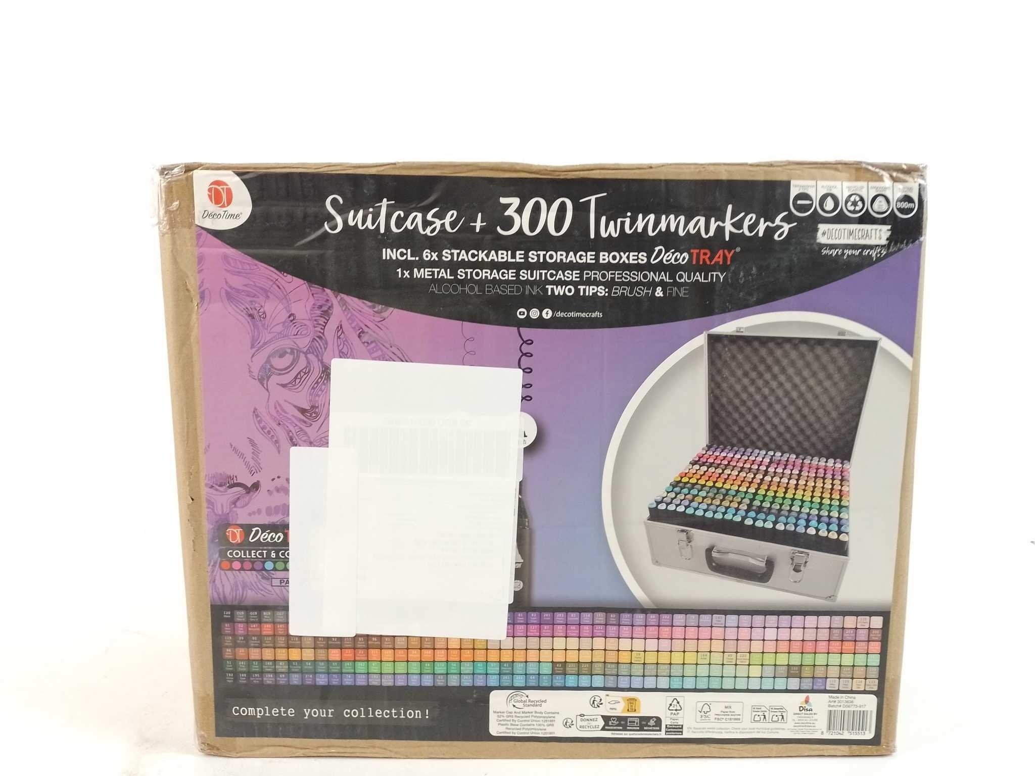 DécoTime Twinmarkers Set XXXL - 300 stuks. Ontketen je creativiteit met de DécoTime Twinmarkers XXXL-set met 300 alcoholmarkers. Elke stift heeft een stevige fijne punt voor lijnen en lettering en een zachte brushpunt voor grote vlakken, blending en schad