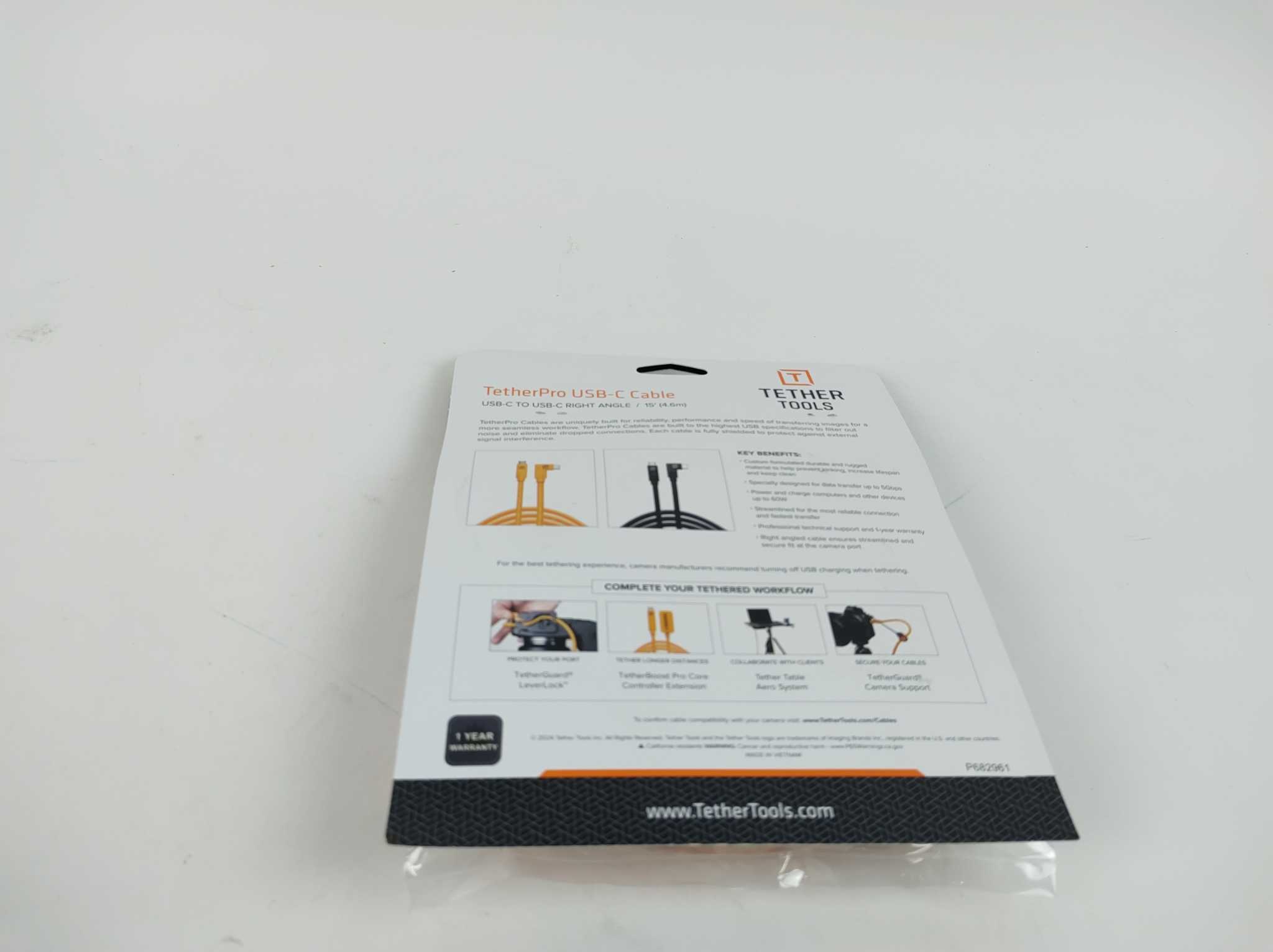 Tether Tools USB-C Kabel TetherPro - 4,6m. De Tether Tools TetherPro USB-C naar USB-C Right Angle kabel (4,6 m) is dé keuze voor tethered shooting. USB 3.2 Gen 1 levert 5 Gbps datadoorvoer, terwijl 60W Power Delivery laden ondersteunt. De haakse camera-zijde voorkomt spanning op de poort; volledig afgeschermde geleiders minimaliseren storingen. De high-visibility oranje mantel houdt je set veilig en overzichtelijk. Compatibel met USB-C camera’s en laptops van nu. Meegeleverd: de 4,6 m kabel. Betrouwbaar, duurzaam en klaar voor professionele workflows, op locatie en in studio.