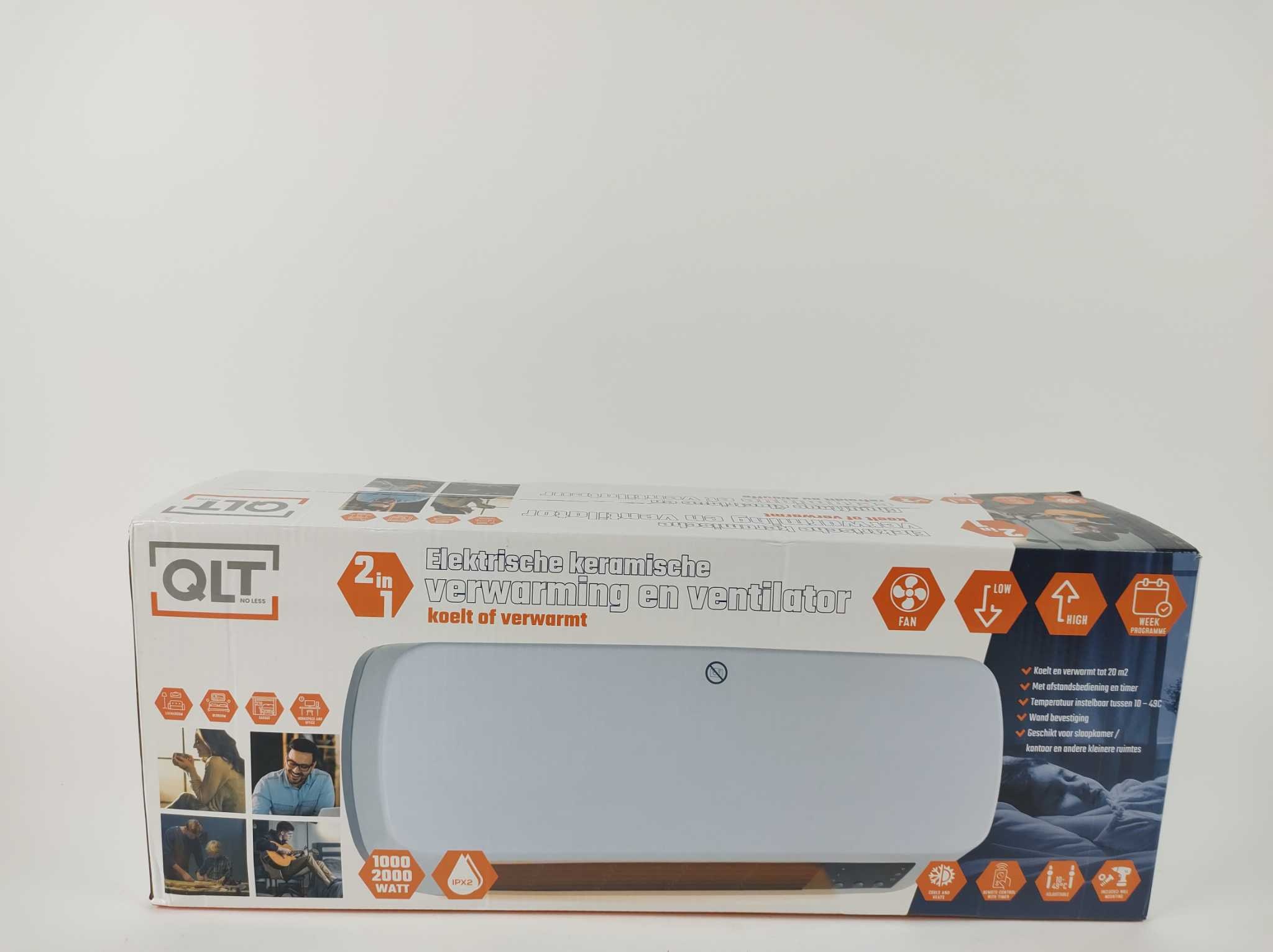 QLT Ventilatorkachel 2-in-1 - Wit. Warm en koel je ruimte zonder vloeroppervlak te verliezen met de QLT 2-in-1 keramische wandkachel 2000W. De PTC-verwarming levert snelle, gelijkmatige warmte, terwijl de ventilatorstand voor frisse lucht zorgt. Stel 10–4