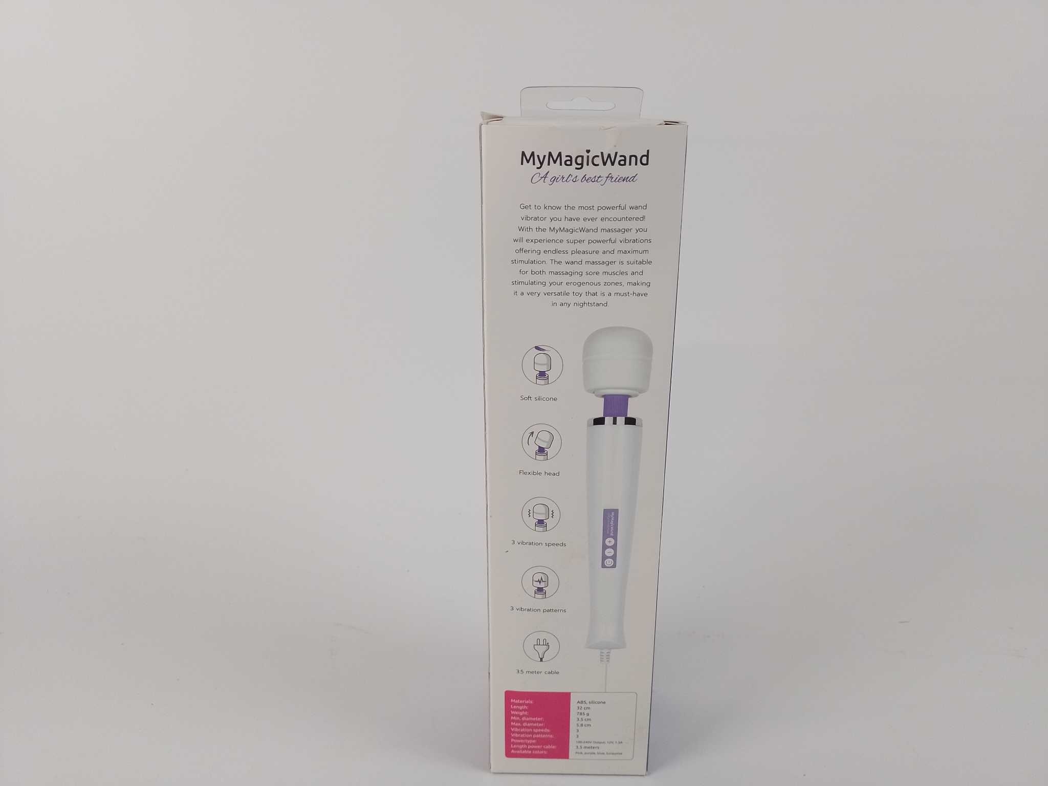 MyMagicWand Vibrator - Paars. De MyMagicWand paars is een krachtige wand vibrator voor wie zoekt naar intens comfort, gebruiksgemak en betrouwbare prestaties. Dankzij de extra sterke motor en 6 vibratiestanden kies je eenvoudig de stimulatie die bij jou past. Het ergonomische handvat ligt prettig in de hand en de vaste stekker met extra lang snoer zorgt voor constante kracht zonder opladen. De luxe afwerking in paars geeft deze wand massager een stijlvolle uitstraling, ideaal voor ontspanning en persoonlijke wellness thuis voor dagelijks aangenaam gebruik.