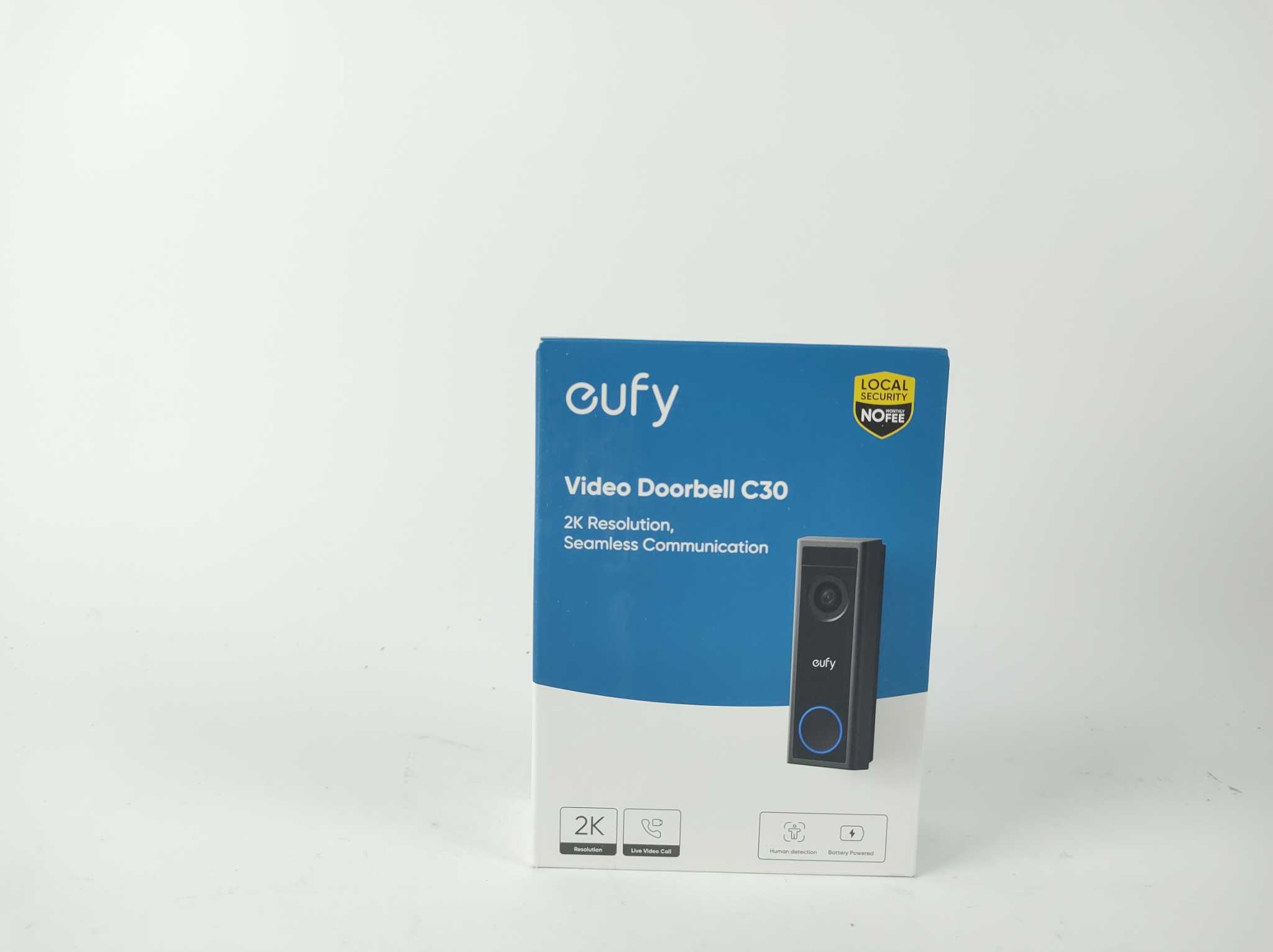 Eufy Video Deurbel C30 - Zwart. De eufy Video Doorbell C30 2K FHD is een draadloze videodeurbel op accu voor beelden bij dag en nacht. Met 2K-beeld, 16:9 uitgebreide weergave, 170° kijkhoek, nachtzicht en tweerichtingsspraak zie en spreek je bezoekers direct. Slimme mens- en bewegingsdetectie stuurt snelle meldingen naar je smartphone. IP65 behuizing is bestand tegen weer en stof. Opslag kan lokaal via microSD tot 128GB of via HomeBase. Inclusief oplaadbare accu en bevestigingsmateriaal. Plaats hem zonder kabels en stel zones in voor minder valse triggers.