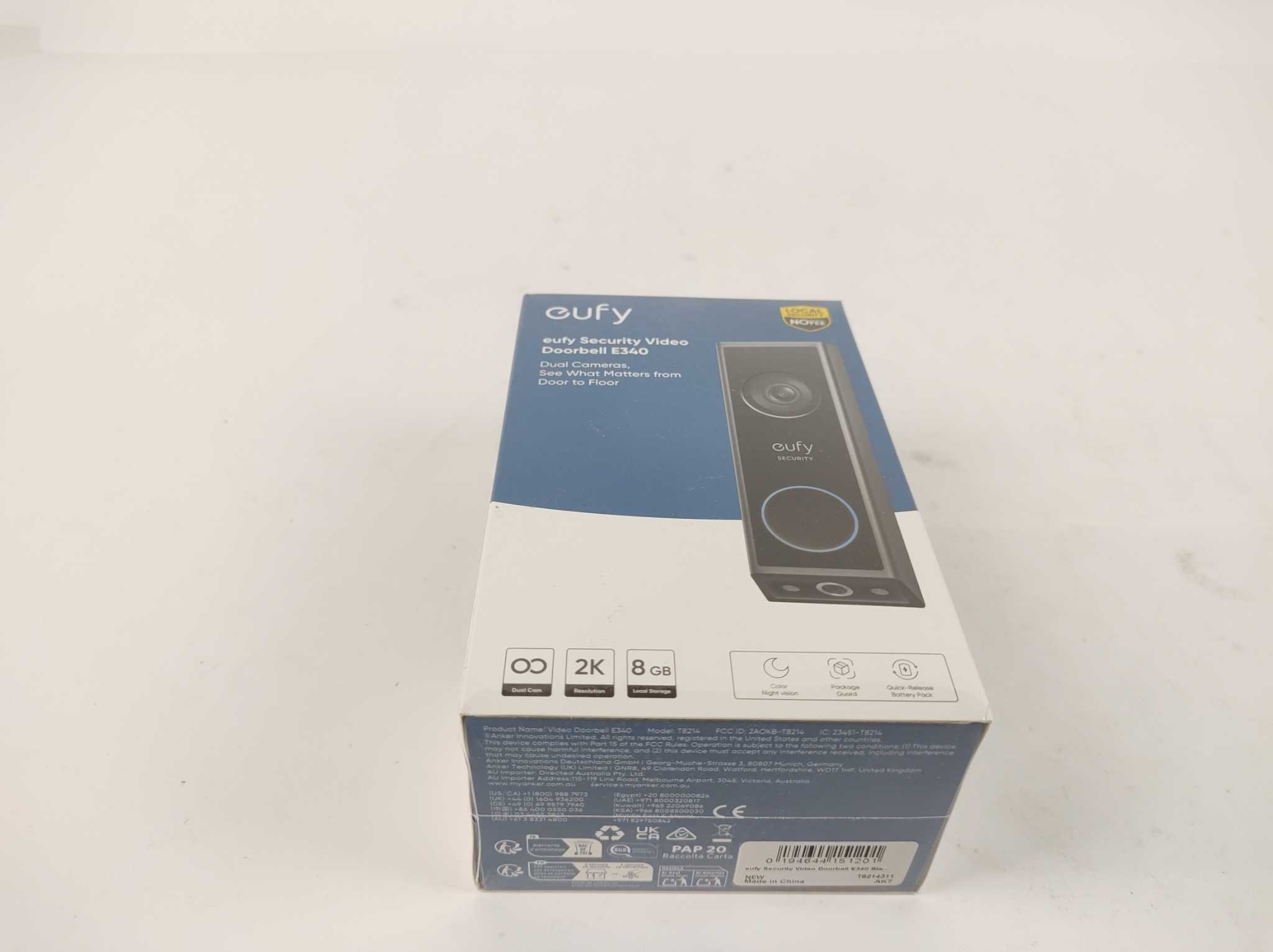 Eufy Video Deurbel E340. De Eufy Security E340 Video Deurbel biedt betrouwbare beveiliging met een dubbele camera: één voor personen en één met zicht op de grond. De 2K‑resolutie (2048×1536) levert heldere beelden en het unieke kleurennachtzicht reikt tot 5 m, zelfs in het donker. Bedienbaar via accu of vaste voeding, compatibel met Alexa en Google Assistant. Met 10 melodieën, microSD‑opslaan tot 128 GB, IP65‑weerstand en LED‑status.