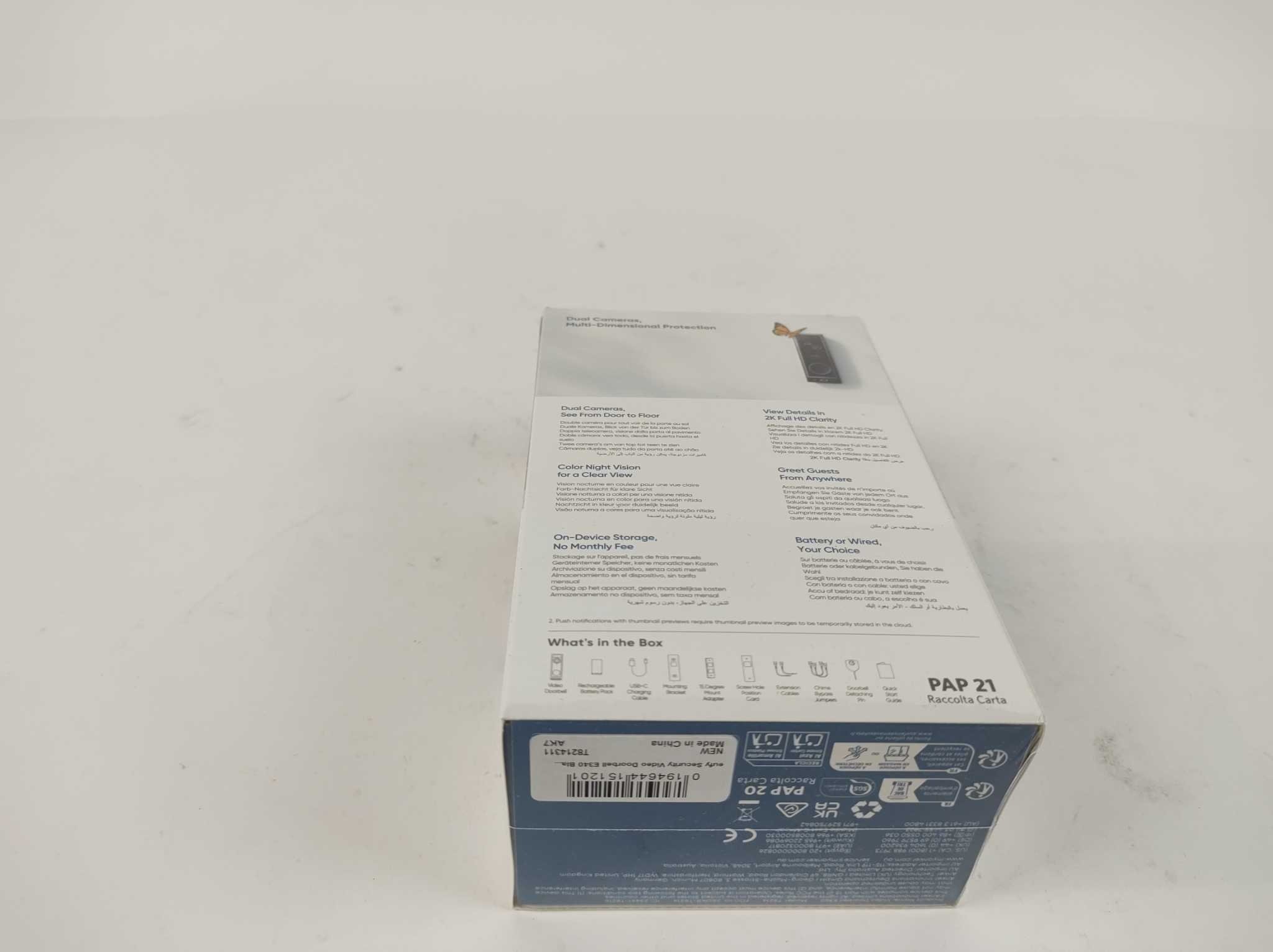 Eufy Video Deurbel E340. De Eufy Security E340 Video Deurbel biedt betrouwbare beveiliging met een dubbele camera: één voor personen en één met zicht op de grond. De 2K‑resolutie (2048×1536) levert heldere beelden en het unieke kleurennachtzicht reikt tot