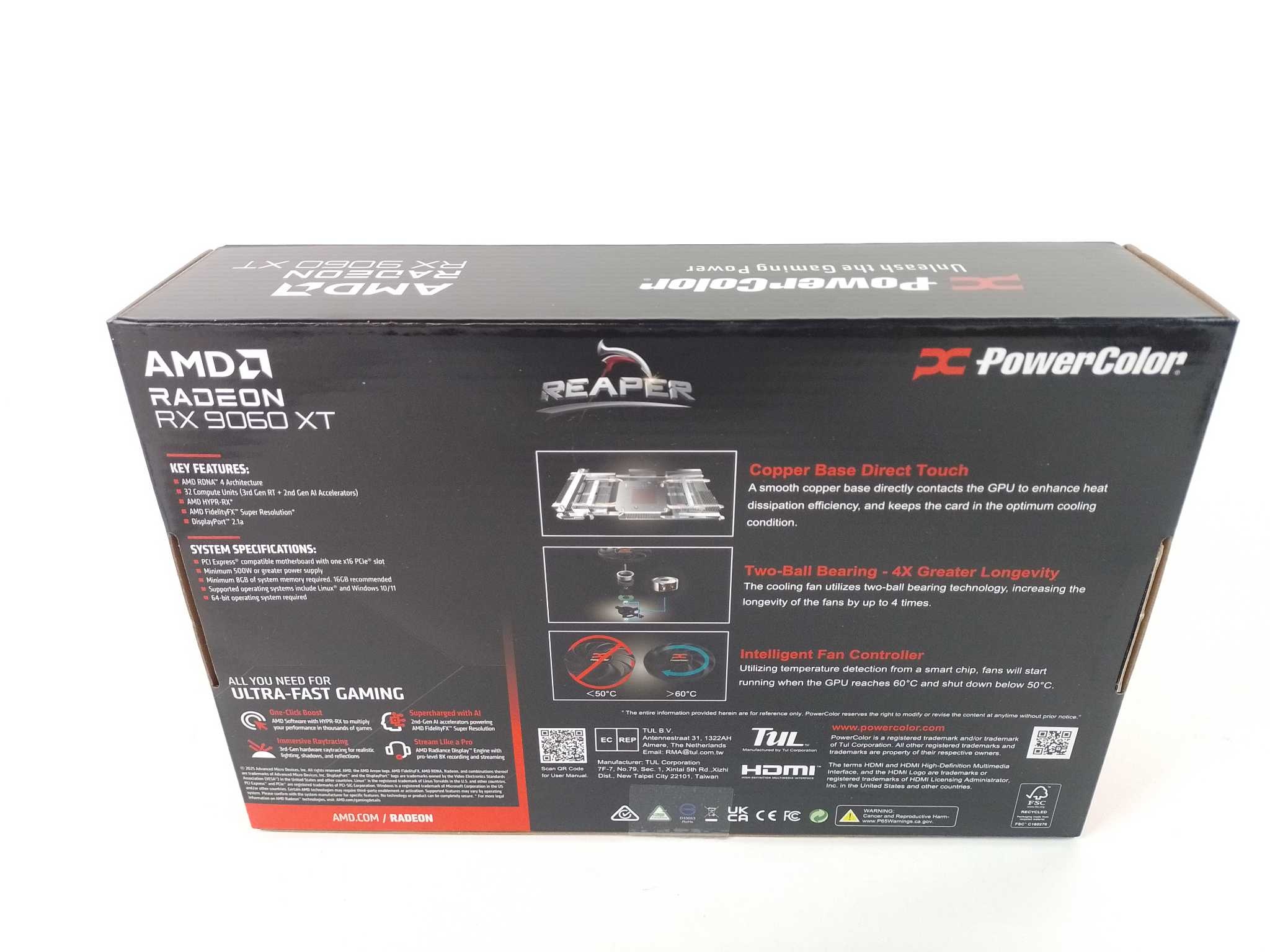 PowerColor Videokaart Reaper Radeon RX 9060 XT - 16GB. De PowerColor Reaper Radeon RX 9060 XT 16GB levert krachtige 1440p-gaming met 16GB GDDR6, PCIe 5.0 en RDNA 4-efficiëntie. Reaper-koeling met stille dubbele lagers houdt temperaturen laag, terwijl Smart Access Memory en FSR-technologie extra frames ontsluiten. Aansluitingen: 2× DisplayPort 2.1 en 1× HDMI 2.1 voor hoge verversing en 4K. AV1-hardware-encoder maakt streamen haarscherp. Meegeleverd: videokaart en handleiding. Ideaal voor moderne builds die compact, stil en snel moeten zijn; klaar voor vandaag én morgen. Ondersteunt raytracing, FidelityFX, en multi-monitor-opstellingen met gemak.
