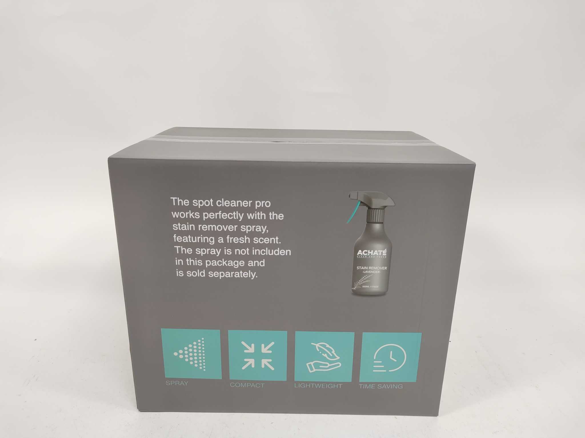 Achaté Vlekkenreiniger. De Achaté vlekkenreiniger is een krachtige tapijt- en meubelreiniger voor het snel verwijderen van hardnekkig vuil uit tapijt, banken, matrassen en auto-interieurs. Dankzij het 3-in-1 systeem van sproeien, schrobben en opzuigen rei