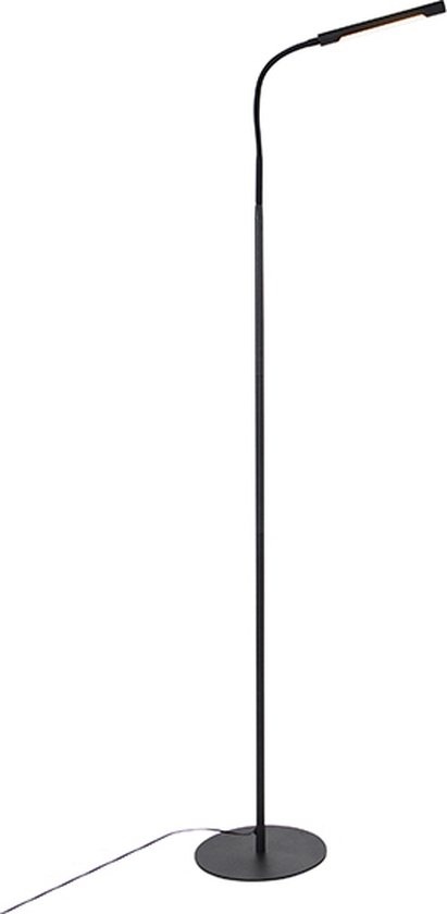 QAZQA Vloerlamp Palka LED - Zwart. De QAZQA Palka Design LED vloerlamp is een stijlvolle, dimbare staande lamp met een flexibele arm en geïntegreerde LED-verlichting. Met een hoogte van 142,4 cm en zwart metalen afwerking past hij perfect in een modern in
