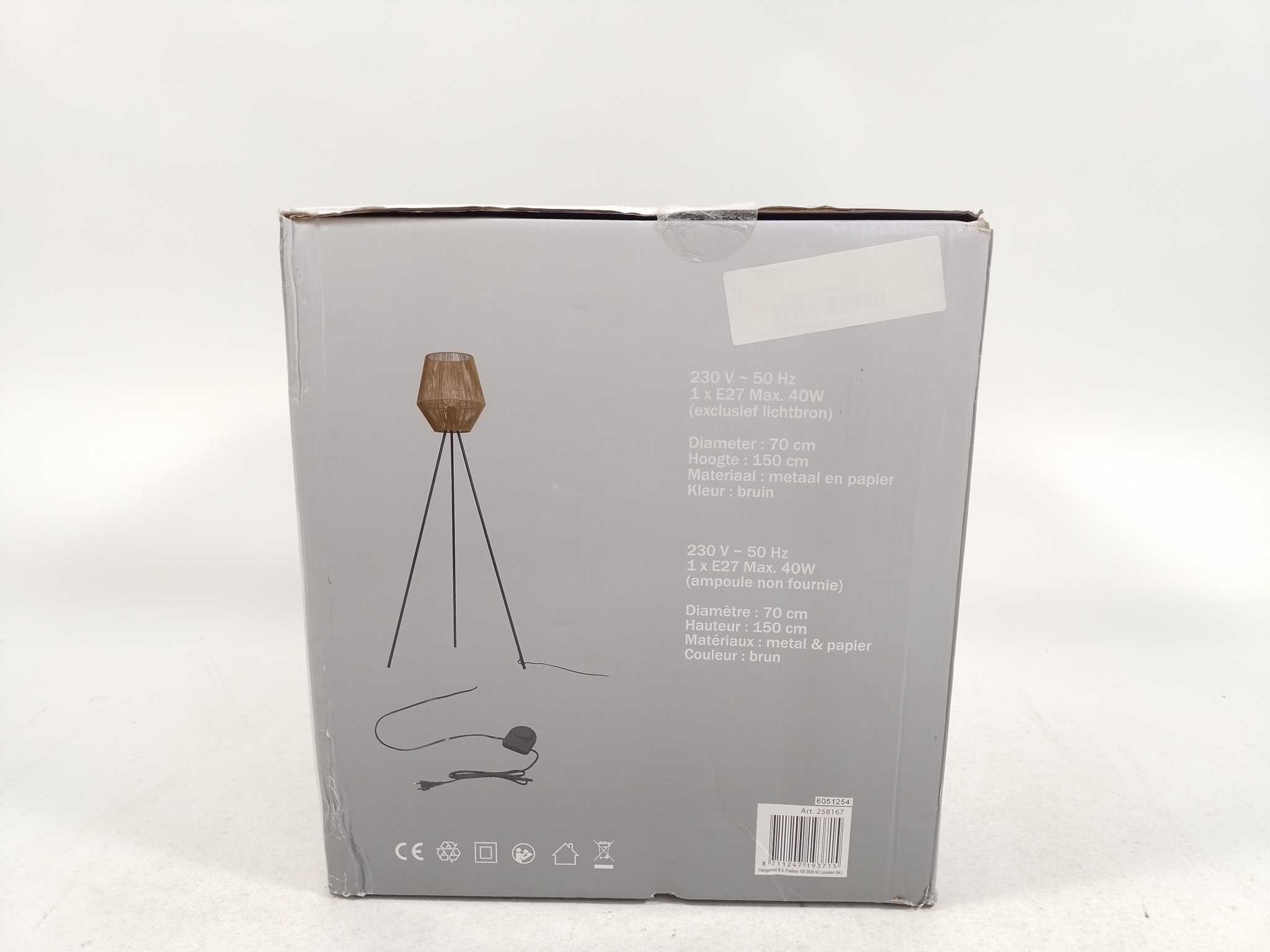 Gamma Vloerlamp Sam - 150x70cm - Bruin. De Gamma vloerlamp Sam in bruin voegt warme, moderne sfeer toe aan elke ruimte. Het slanke metalen frame en de textiele kap geven diffuus licht, ideaal voor woonkamer, slaapkamer of leeshoek. Met E27-fitting kies je zelf een LED-lamp; dimbaar met geschikte dimmer. Afmetingen 150×70 cm bieden presence zonder te domineren. In-snoer schakelaar en lange kabel voor flexibele plaatsing. Eenvoudig te monteren en stabiel dankzij stevige voet. Geleverd met lampvoet, kap en handleiding; lichtbron niet inbegrepen. Past bij industrieel Scandinavisch interieur.