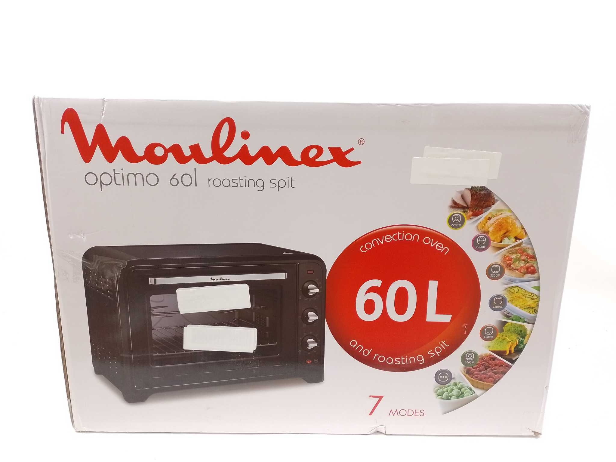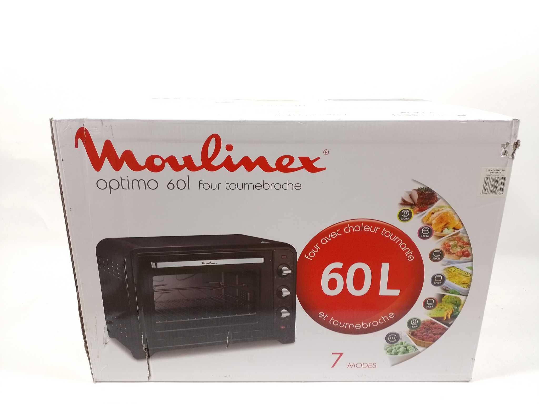 Moulinex Vrijstaande Oven Optimo 60L - OX495810 - Zwart. De Moulinex Optimo OX495810 vrijstaande oven van 60 liter is ideaal voor dagelijks koken, bakken en grillen. Kies uit 7 standen: hetelucht, conventioneel, grill, gebak, bain-marie, ontdooien en draa