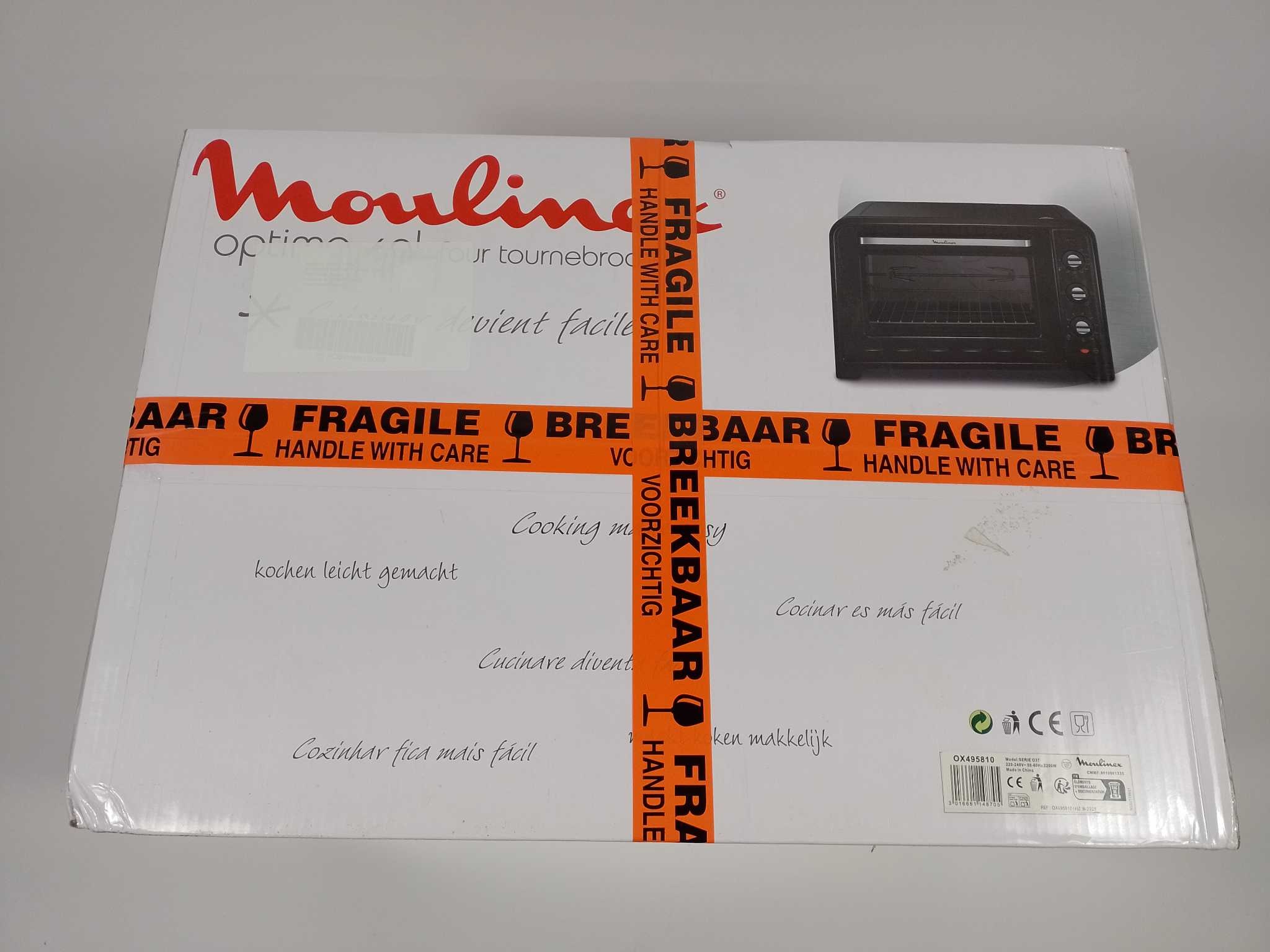 Moulinex Vrijstaande Oven Optimo 60L - OX495810 - Zwart. De Moulinex Optimo OX495810 vrijstaande oven van 60 liter is ideaal voor dagelijks koken, bakken en grillen. Kies uit 7 standen: hetelucht, conventioneel, grill, gebak, bain-marie, ontdooien en draaispit. De thermostaat tot 240 °C en timer tot 120 minuten geven precieze controle. Binnenverlichting en gerookt kijkvenster maken toezicht makkelijk; dubbele glazen deur houdt warmte vast. Inclusief 2 omkeerbare roosters, bakplaat/druippan en braadspitset. Dankzij gelijkmatige luchtcirculatie bereid je twee gerechten tegelijk, van pizza tot kip, met knapperige korst en sappige kern.