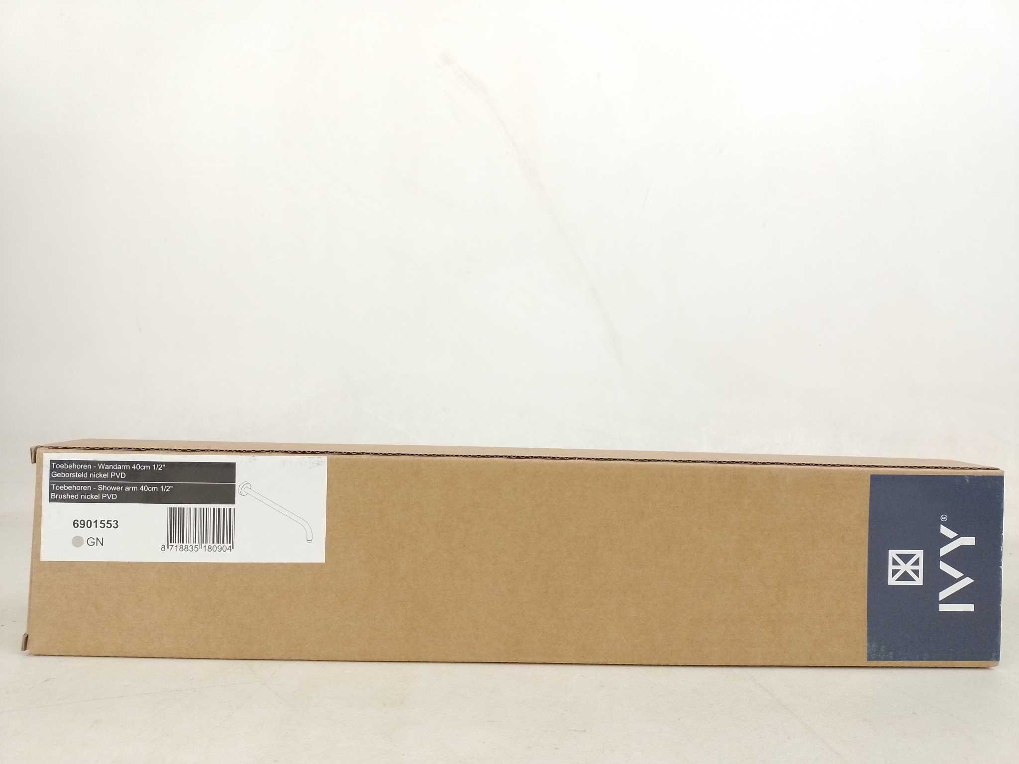 IVY Wandarm 40cm - 1/2" - Geborsteld Nikkel (PVD). Geef je douche een strakke upgrade met de Ivy wandarm 40 cm in geborsteld nikkel (PVD). De slanke, rechte arm brengt de hoofddouche perfect in het midden en past dankzij de universele 1/2”-aansluiting op