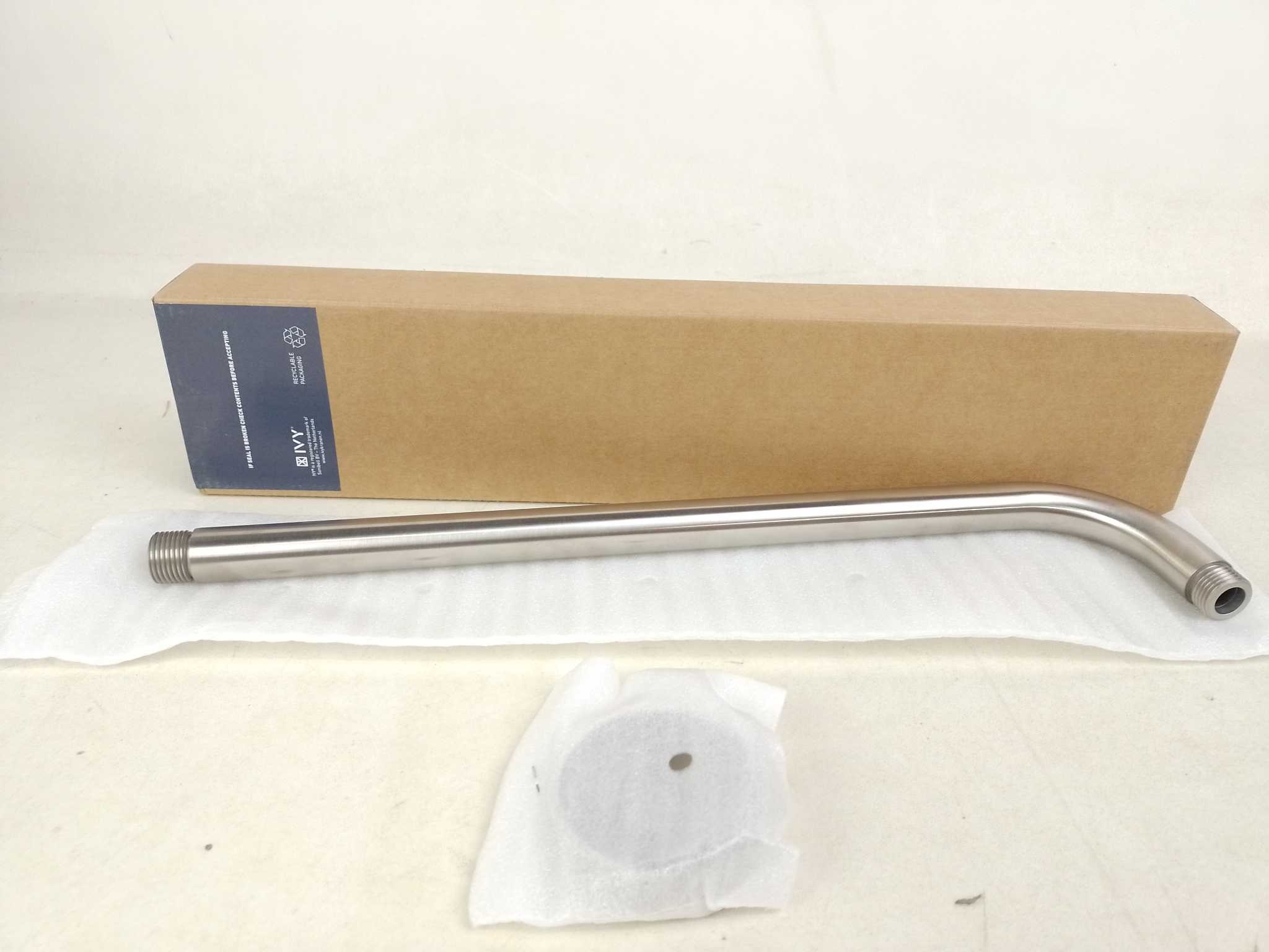 IVY Wandarm 40cm - 1/2" - Geborsteld Nikkel (PVD). Geef je douche een strakke upgrade met de Ivy wandarm 40 cm in geborsteld nikkel (PVD). De slanke, rechte arm brengt de hoofddouche perfect in het midden en past dankzij de universele 1/2”-aansluiting op vrijwel iedere douchekop. De PVD-coating is extreem kras-, kleur- en corrosiebestendig, ideaal voor intensief dagelijks gebruik. Stevige, massieve constructie met verborgen aansluiting zorgt voor een minimalistische look. Eenvoudig te monteren. Wordt geleverd inclusief sierrozet; combineer met een 20–30 cm regendouche voor een luxueuze hotelsfeer in huis.