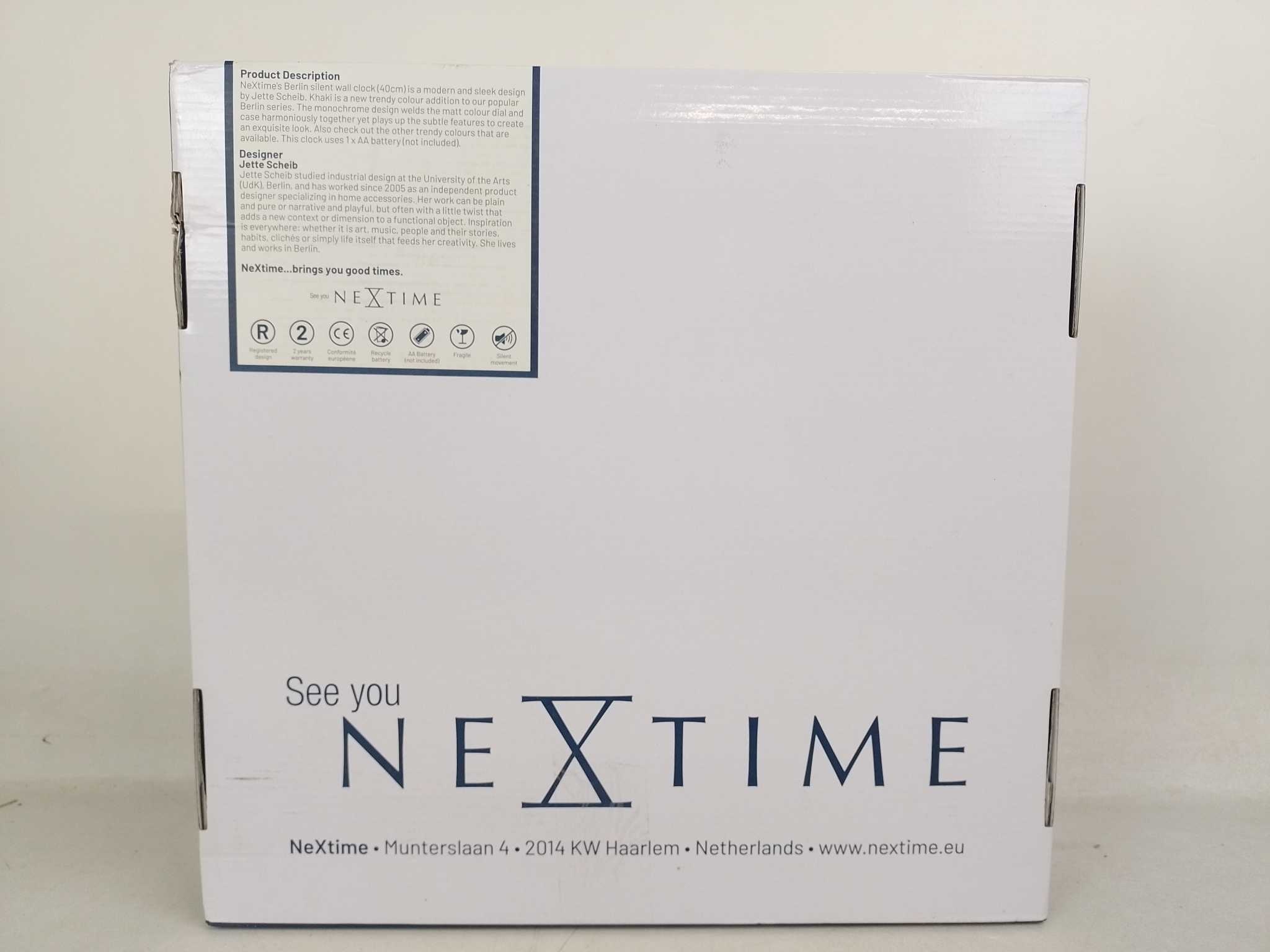 NeXtime Wandklok Berlin - 40cm - Khaki. De NeXtime Berlin L wandklok (Ø40 cm) in khaki geeft elke ruimte een moderne, stille uitstraling. Het matte metalen frame en de duidelijke cijfers zorgen voor stijlvolle, rustgevende tijdweergave zonder tikkend geluid. Ontworpen door Jette Scheib, past deze klok perfect in woonkamer, keuken of kantoor. Eenvoudig op te hangen en energiezuinig: werkt op 1 AA-batterij (niet inbegrepen). Tijdloos design, stille sweep-uurwerk, krasbestendige afwerking en hoge afleesbaarheid maken dit een elegante blikvanger met functionele precisie. Beschikbaar in een trendy groene tint.