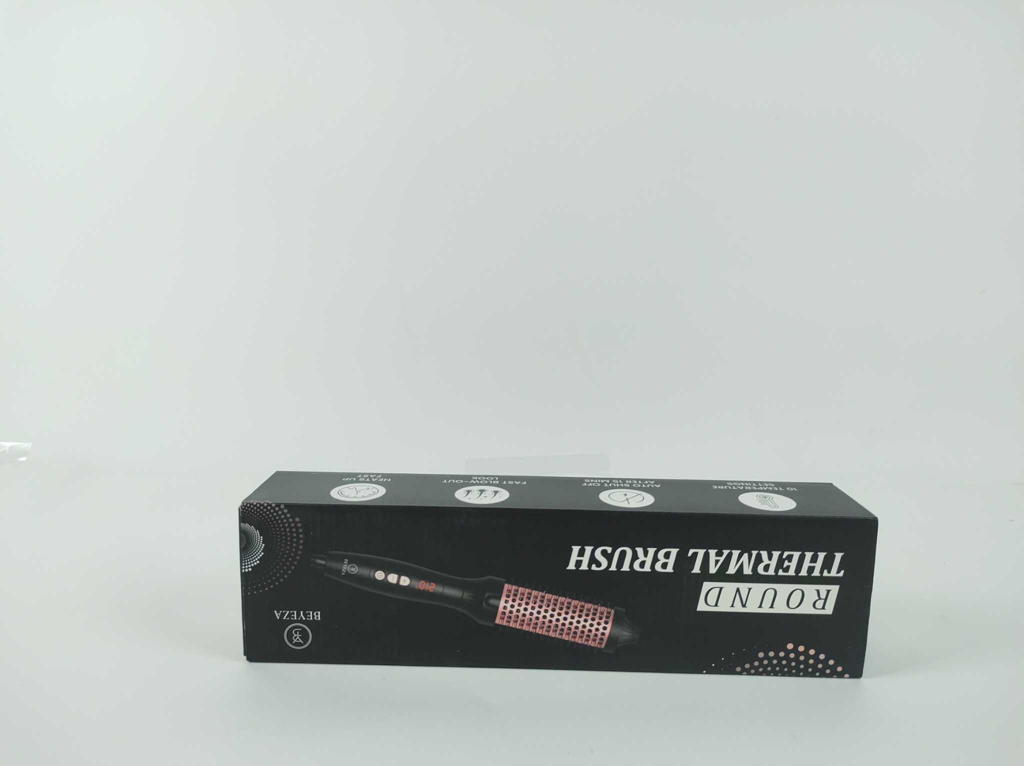 Beyeza Warmteborstel Thermal Brush. De Beyeza Thermal Brush keramische warmteborstel maakt stylen snel, glanzend en eenvoudig zonder föhnfunctie. Dankzij de 38 mm cilinder, ionentechnologie en keramische coating creëer je moeiteloos volume, zachte slag of een gladde look met minder pluis. Met 10 temperatuurstanden van 120 tot 210 graden en een digitaal display stem je de warmte af op jouw haartype. Inclusief haarklemmen, hittebestendige handschoen en reinigingsborsteltje, zodat je direct compleet aan de slag kunt met comfortabel en verzorgd haar thuis of onderweg op reis.