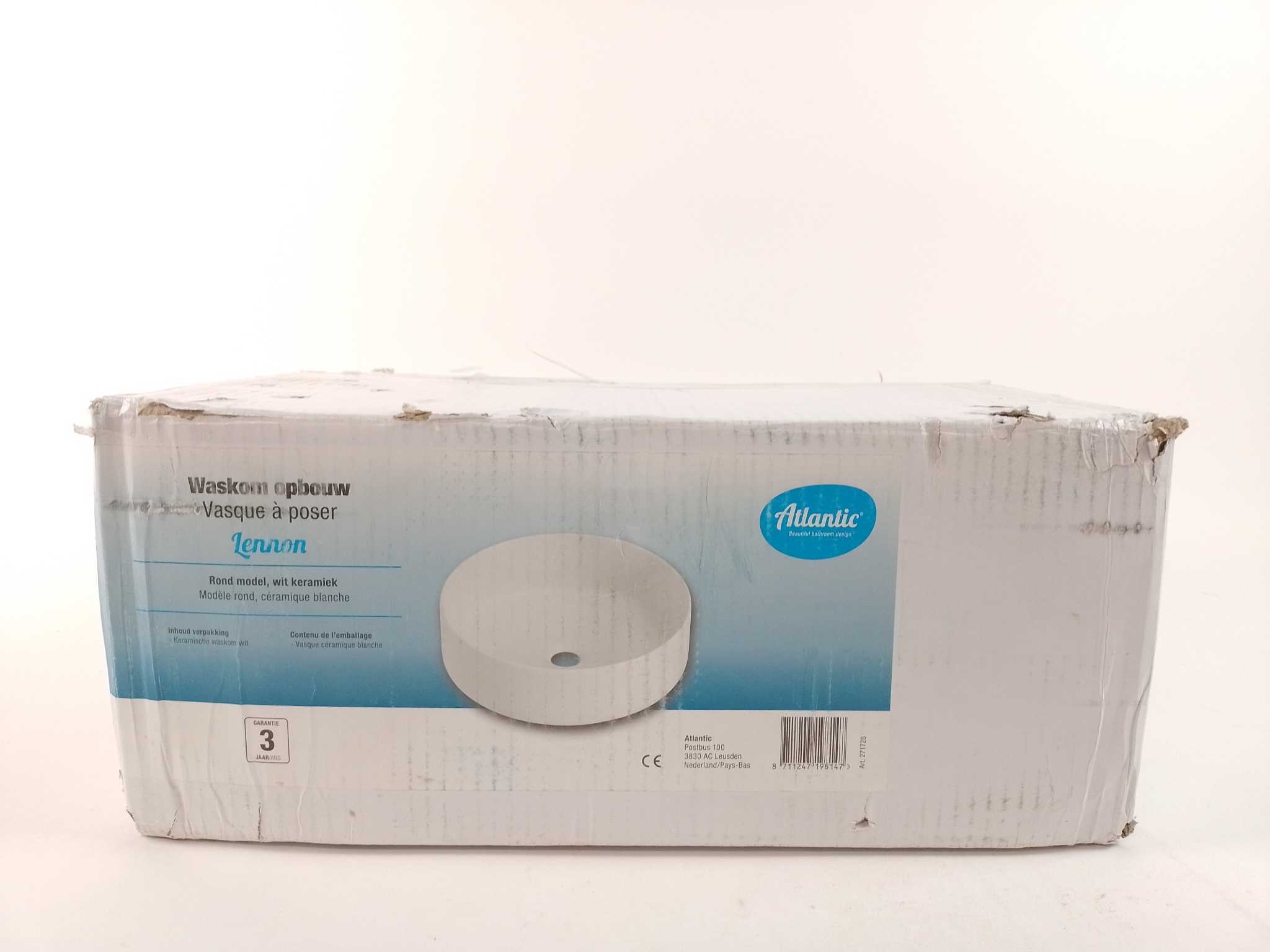 Atlantic Waskom Lennon - Wit. Deze Atlantic Lennon waskom in wit keramiek met een ronde vorm (Ø 37 cm, hoogte ca. 12 cm) combineert elegantie met functioneel design. De glanzende, krasvaste afwerking en slanke lijnen geven je badkamer een frisse, moderne uitstraling, terwijl het diepere model water splatvrij houdt tijdens gebruik. Met Belgaqua-keurmerk voor drinkwatergeschiktheid is deze duurzame waskom zowel stijlvol als veilig — perfect voor dagelijks comfort.