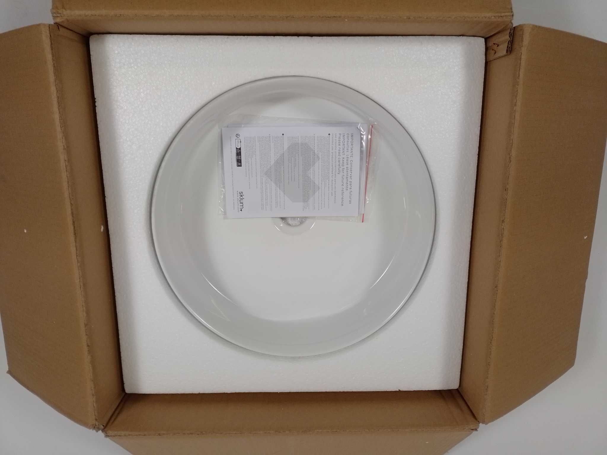 Sklum Wastafel Lenka - Ø40 cm - Wit. De Lenka keramische wastafel geeft je badkamer een minimalistische upgrade met strakke lijnen en een tijdloze look. Het hoogwaardige, dicht gebakken keramiek is kras- en vlekbestendig, behoudt lang zijn glans en is eenvoudig schoon te maken. Dankzij de compacte, opzet-montage past hij perfect op een planchet of meubel en bespaar je ruimte. De dunne rand oogt elegant, terwijl de diepe kuip spatwater beperkt. Combineer met een hoge kraan en standaard afvoer voor een complete, stijlvolle en duurzame oplossing.