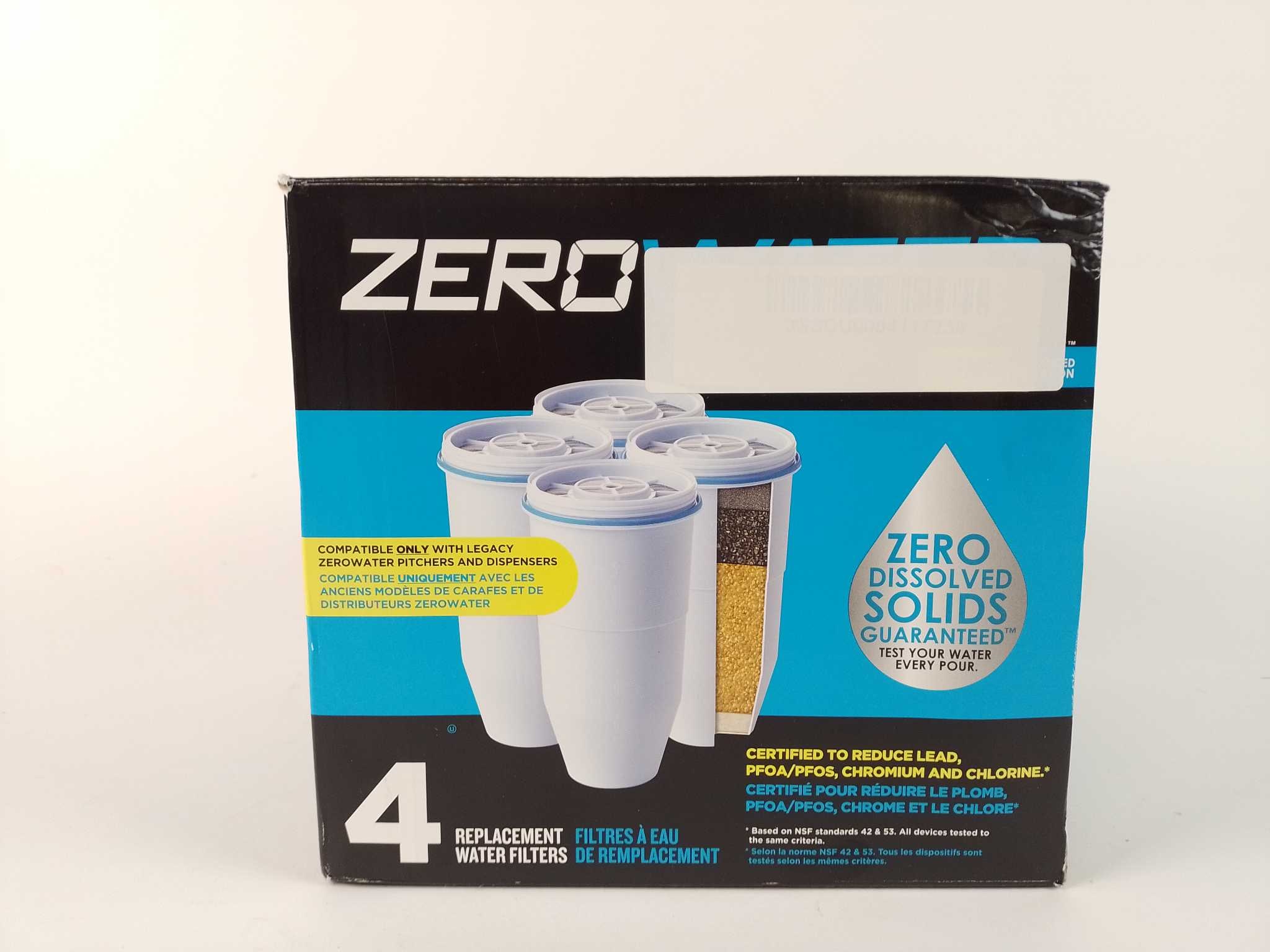 ZeroWater Waterkan Vervangingsfilters - 4-Pack. ZeroWater vervangingsfilters 4-pack levert zuiver water met 5-traps filtratie tot 0 TDS. Vermindert lood, chroom, PFAS, pesticiden en kalk voor betere smaak en helderheid. Past op alle ZeroWater kannen en di