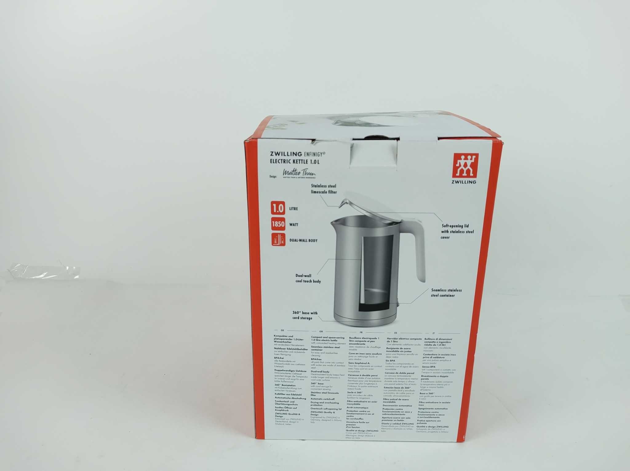 Zwilling Waterkoker Enfinigy - 1L - Zilver/Wit. De Zwilling Enfinigy waterkoker van 1 liter combineert een strak design met snelle prestaties voor dagelijks gebruik in de keuken. Met 1850 watt vermogen kookt hij water razendsnel, terwijl de dubbelwandige
