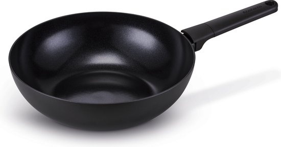 Brabantia Wokpan Nero 30cm - Zwart. De Brabantia Nero wokpan 30 cm is ideaal voor roerbakken op inductie, gas en alle andere warmtebronnen. De pan is gemaakt van 100% gerecycled aluminium, warmt snel en gelijkmatig op en blijft verrassend licht. De PFAS-v