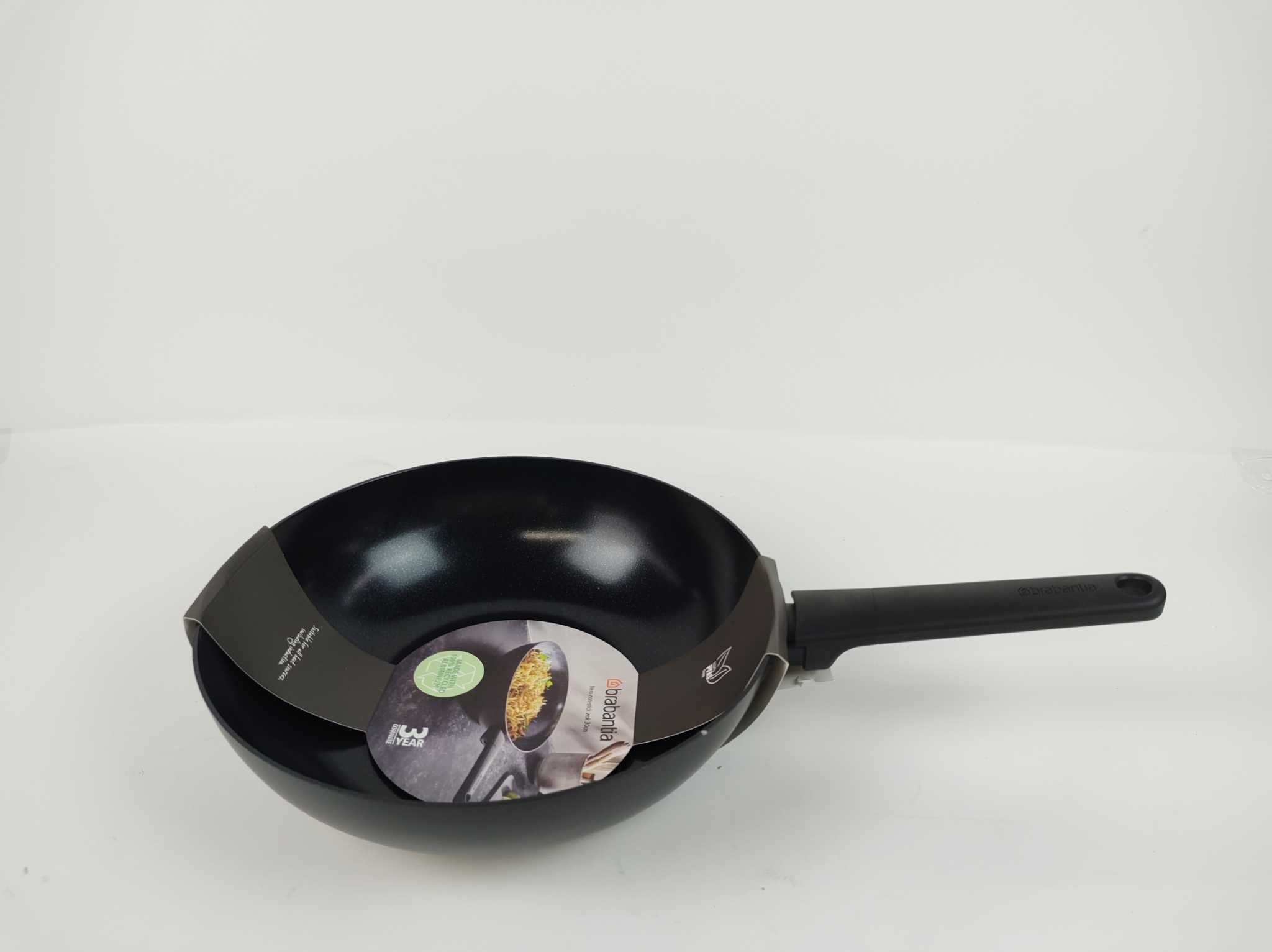 Brabantia Wokpan Nero 30cm - Zwart. De Brabantia Nero wokpan 30 cm is ideaal voor roerbakken op inductie, gas en alle andere warmtebronnen. De pan is gemaakt van 100% gerecycled aluminium, warmt snel en gelijkmatig op en blijft verrassend licht. De PFAS-v