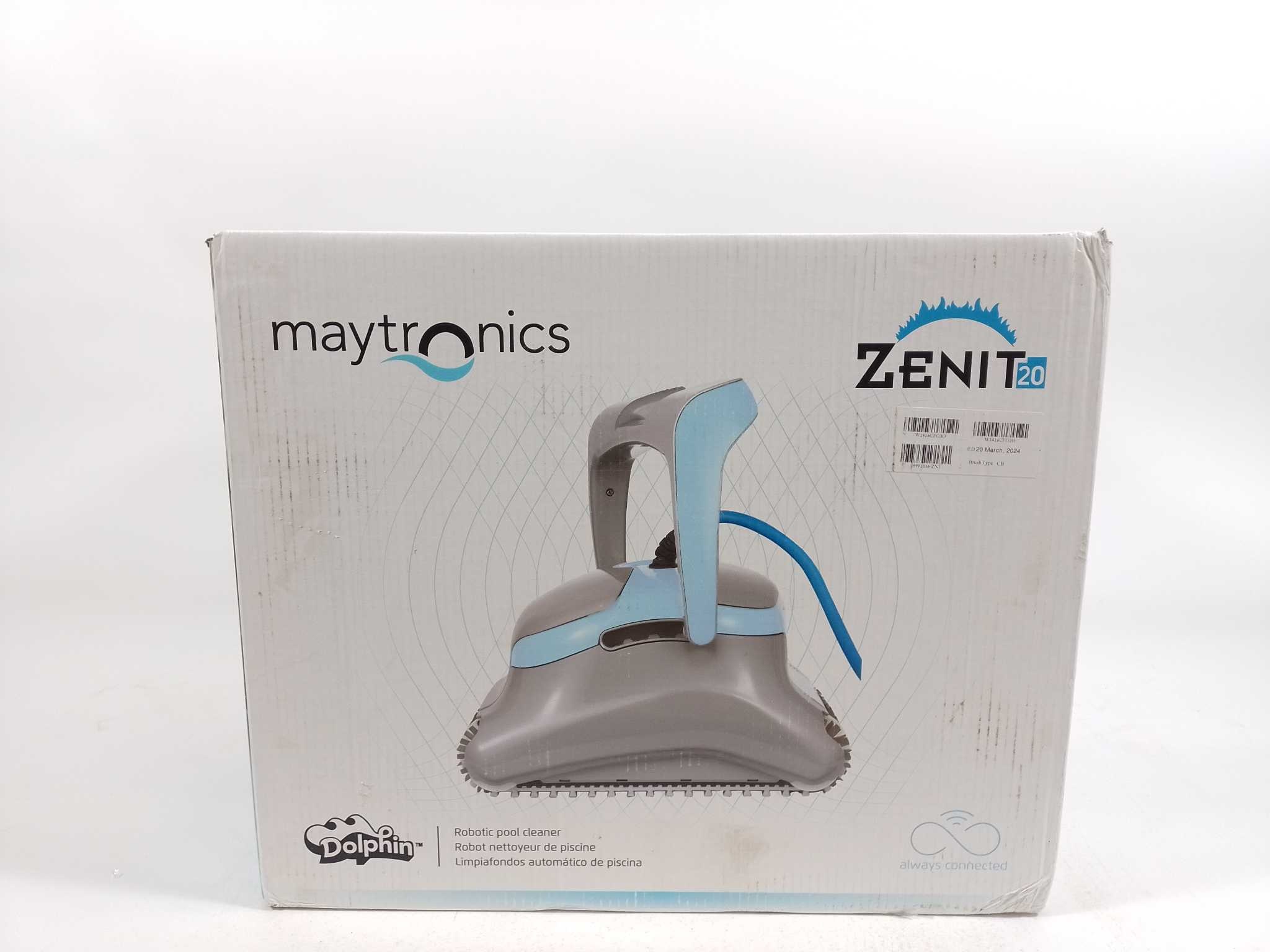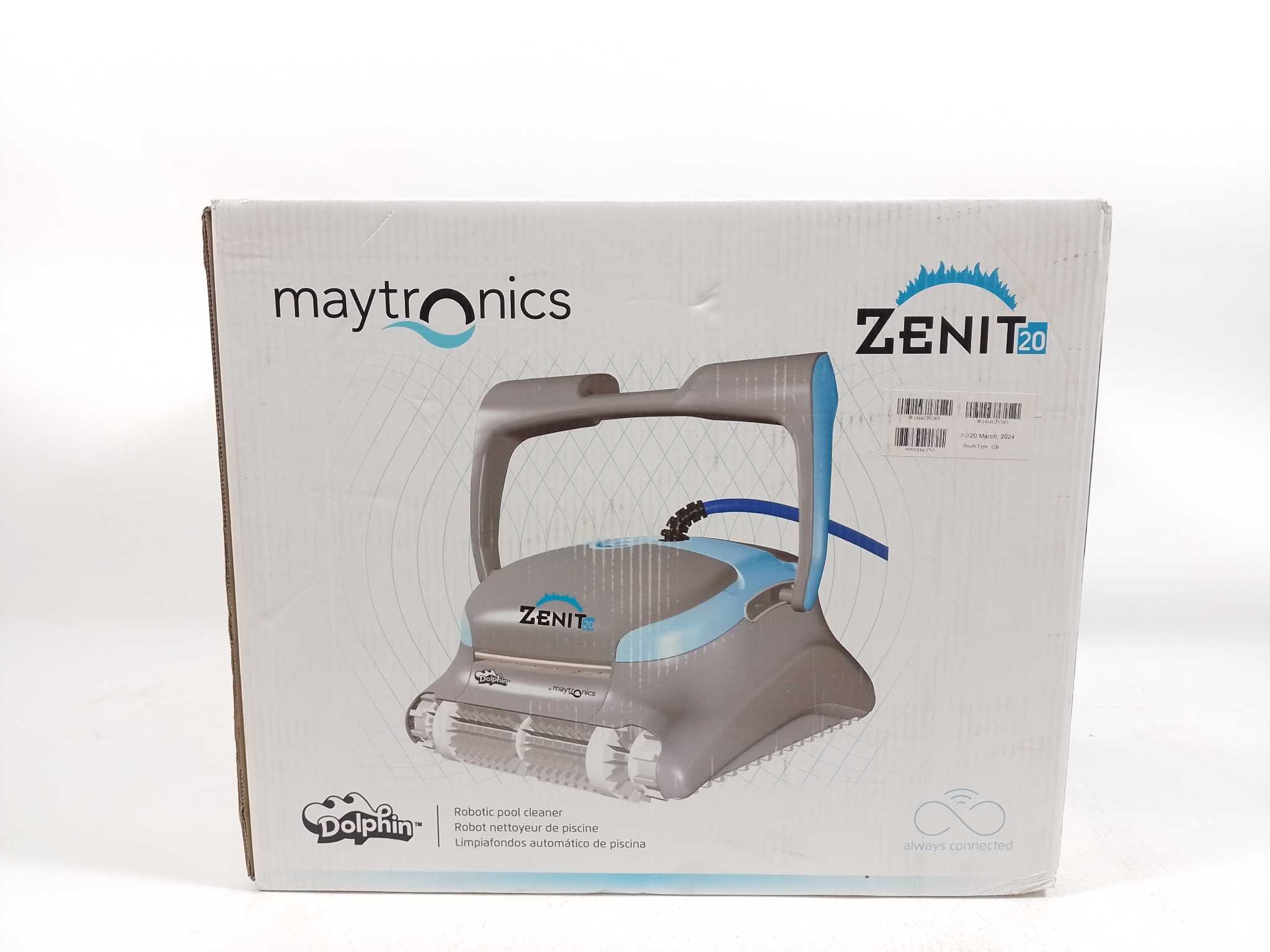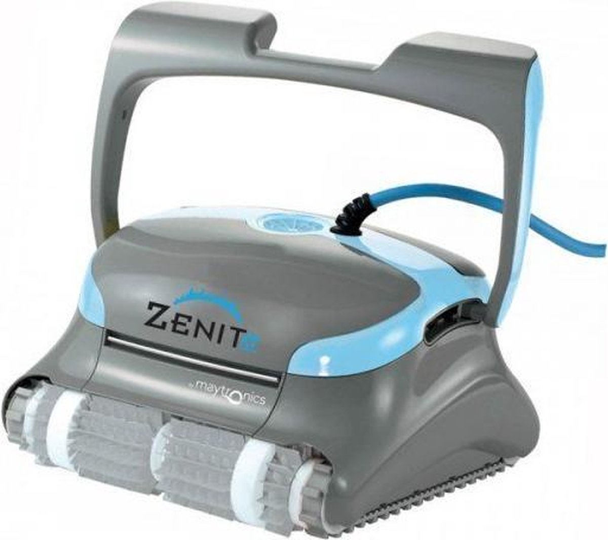 Maytronics Zwembadrobot Zenit 20. Maak je zwembad moeiteloos schoon met de Dolphin Zenit 20 Pro zwembadrobot. Hij reinigt bodem, wanden én waterlijn in 2,5 uur, dankzij PowerStream-navigatie, dual-drive en een actieve borstel. Geschikt voor baden tot 12×6